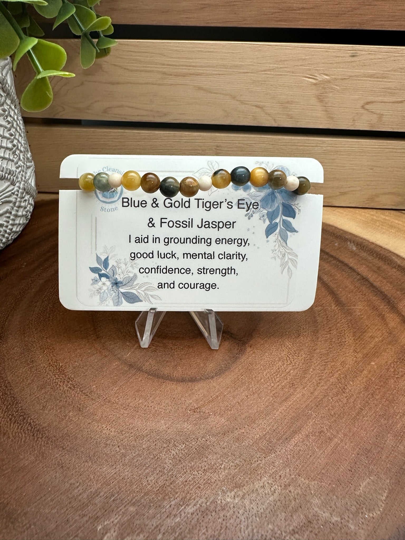 Blue and Golden Tiger's Eye and Fossil Jasper Bracelet