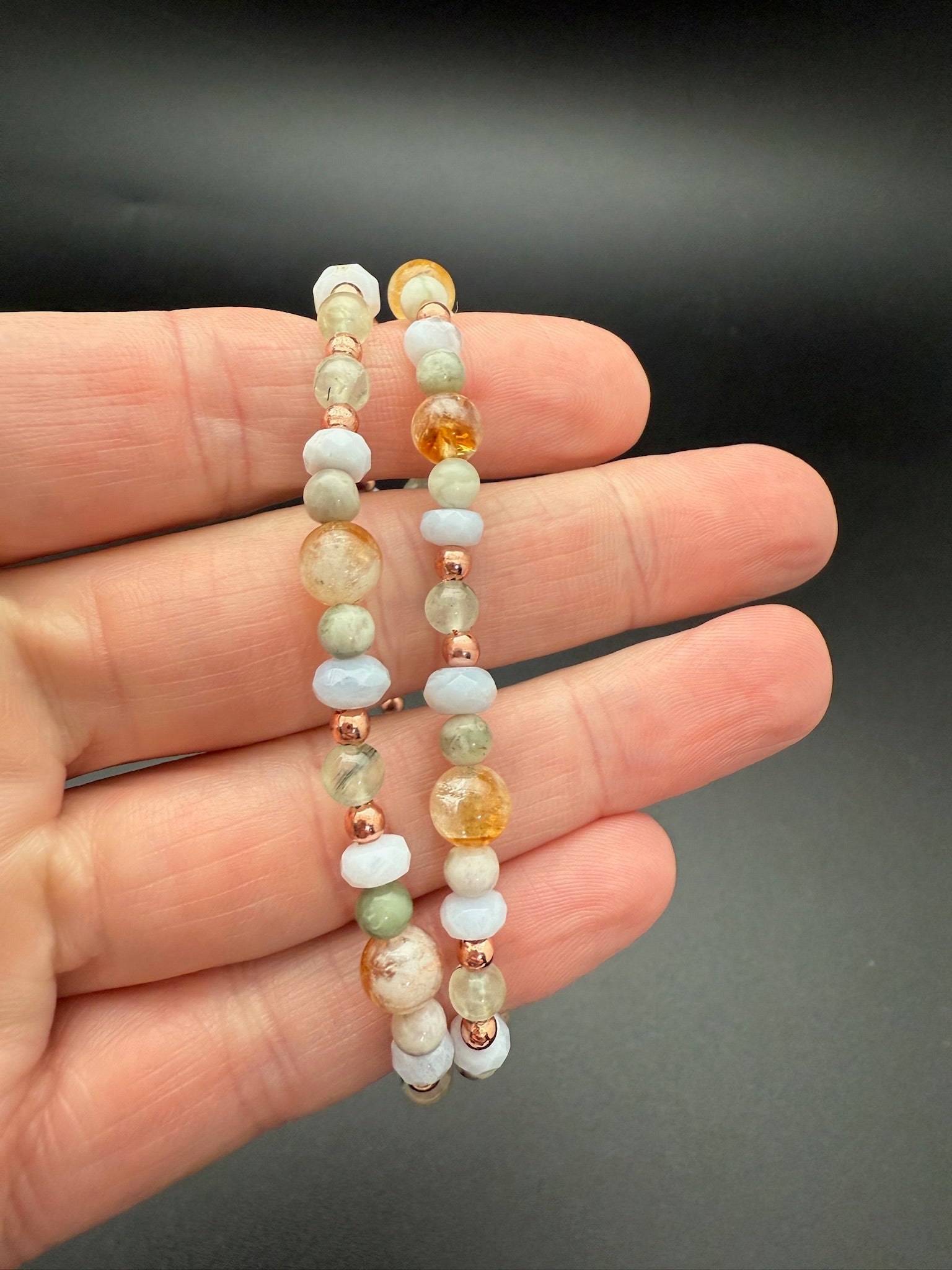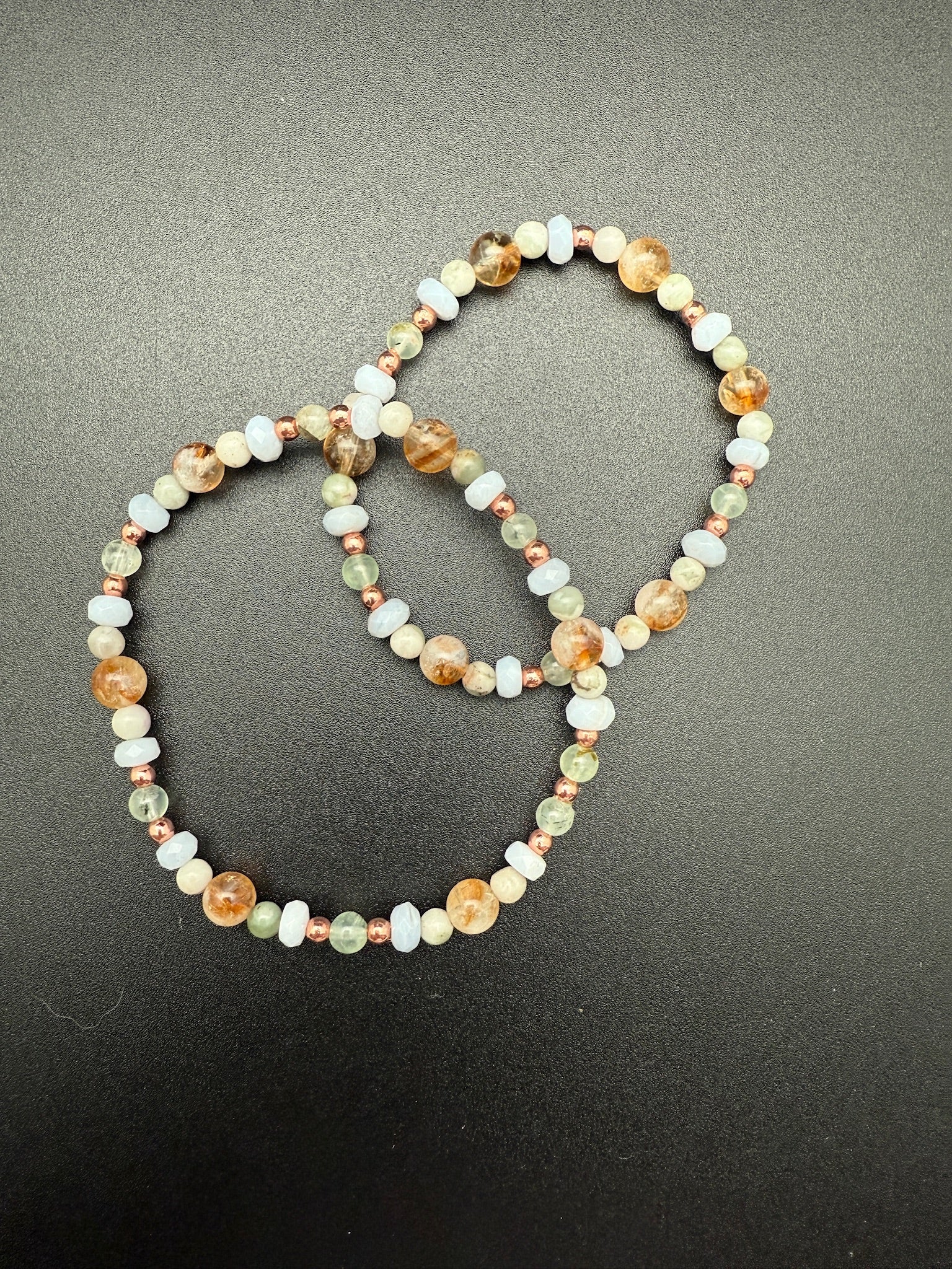 Citrine, Blue Lace, Harmony Jasper, Prehnite and Hematite Bracelet