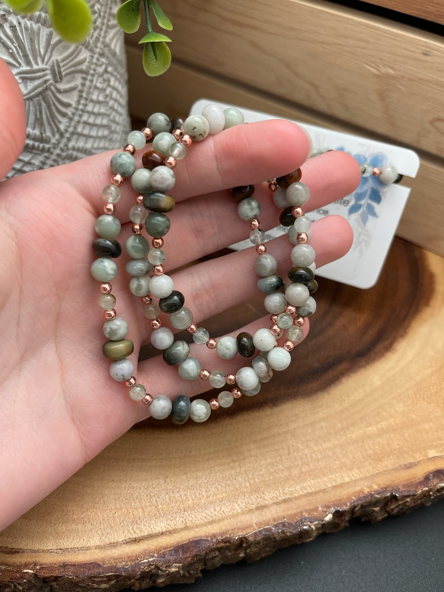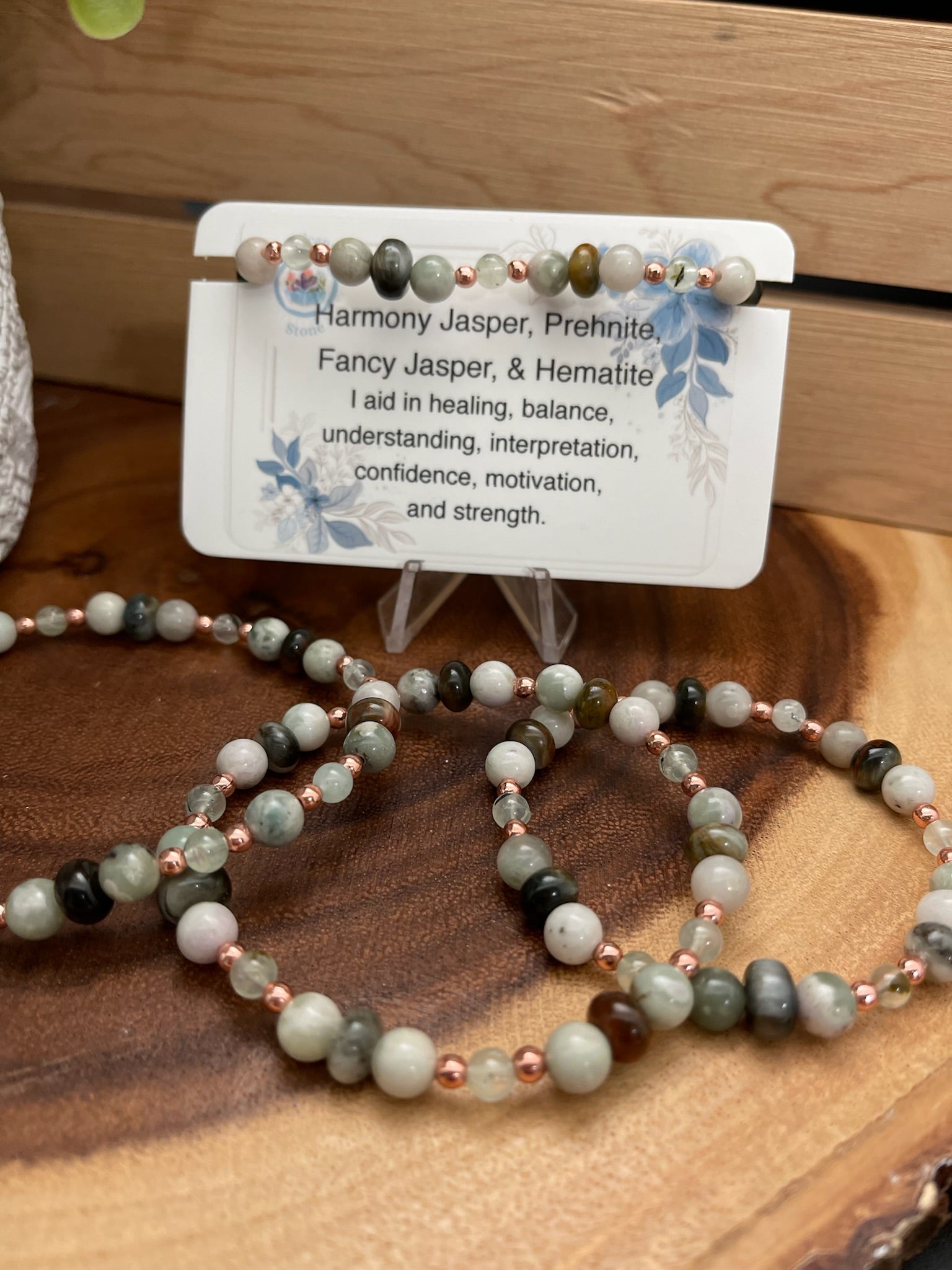Harmony Jasper, Prehnite, Fancy Jasper, and Hematite Bracelet