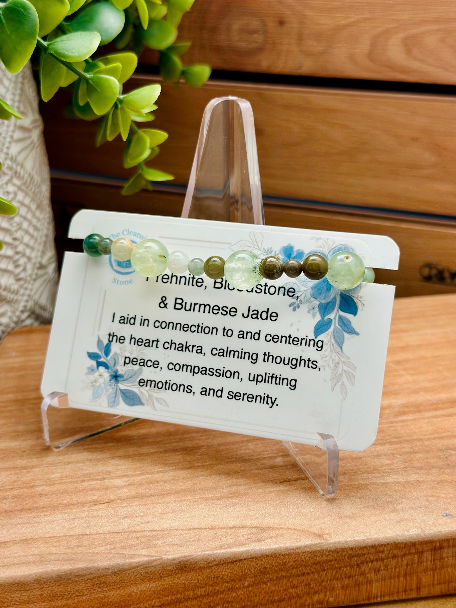 Prehnite, Bloodstone, & Burmese Jade Bracelet
