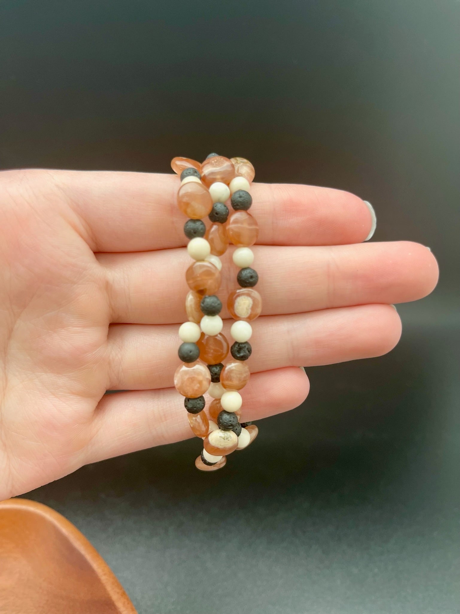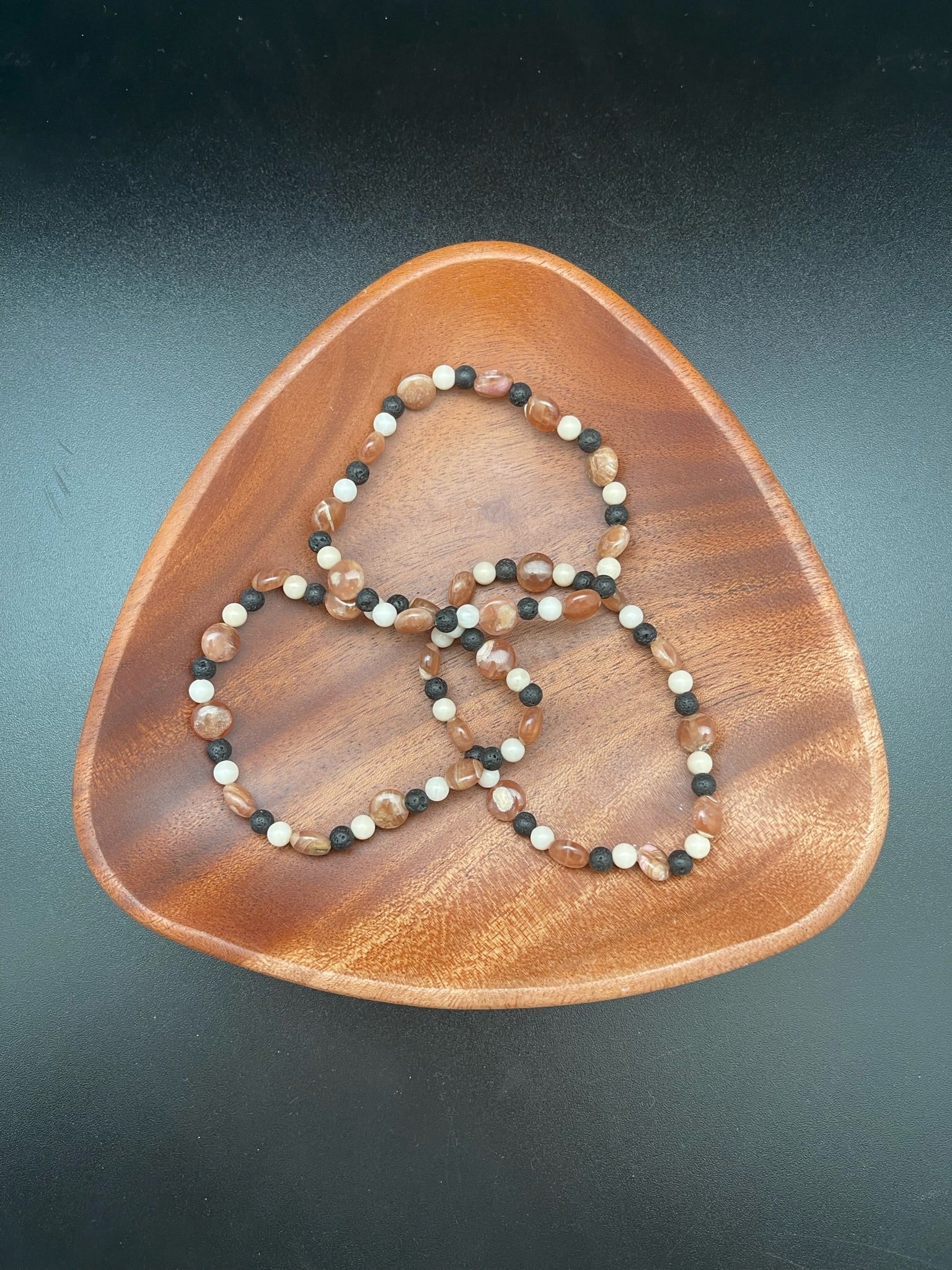 Rhodochrosite, Fossil Jasper and Lava Bracelet
