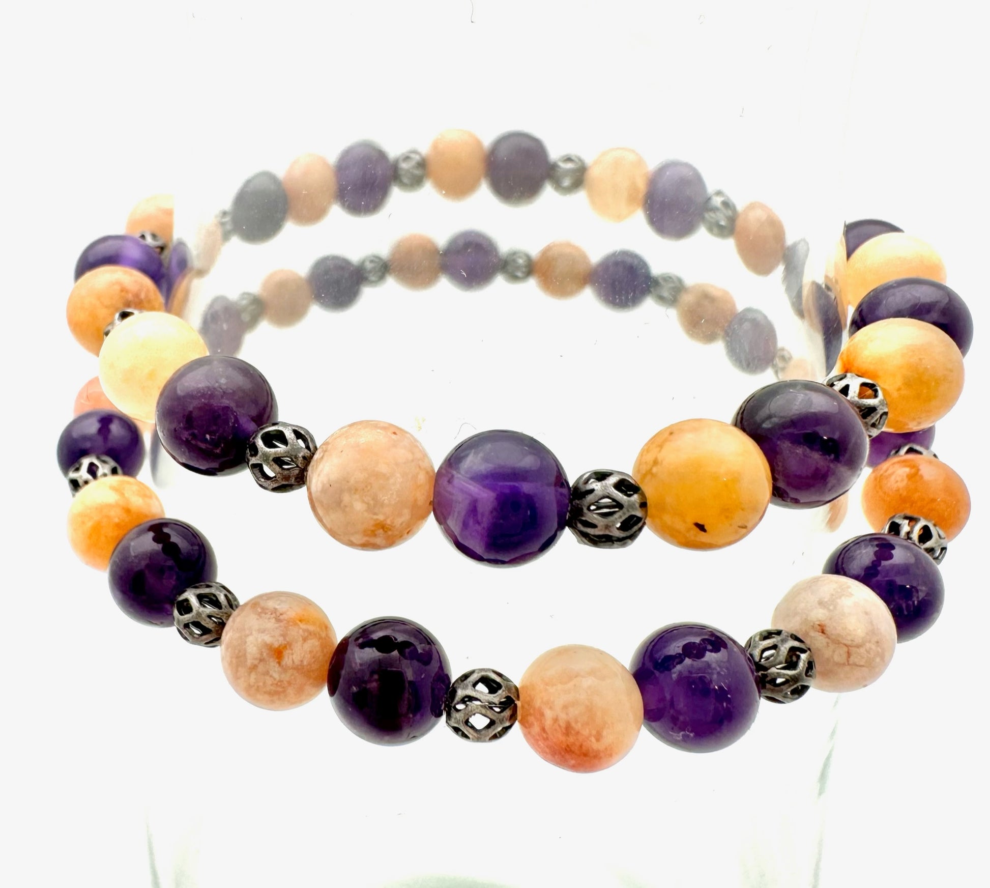 Amethyst and Pink Moss Agate Bracelet
