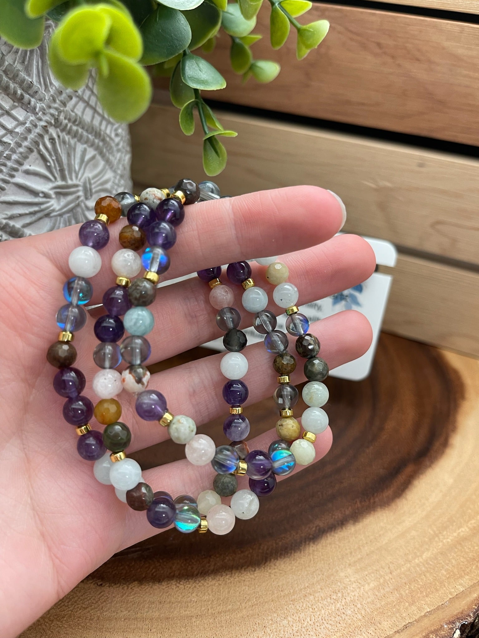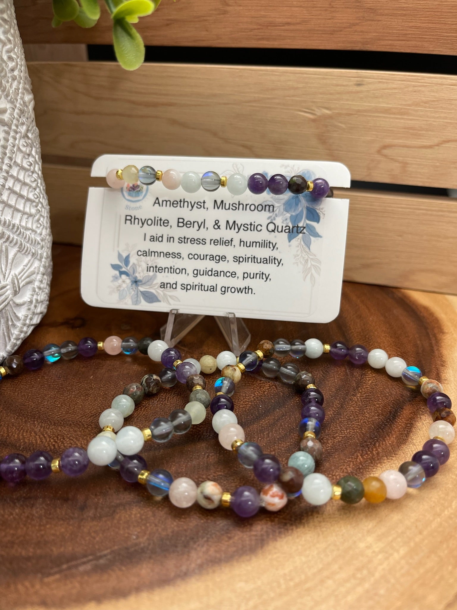Amethyst, Mushroom Rhyolite, Beryl, and Mystic Quartz Bracelet