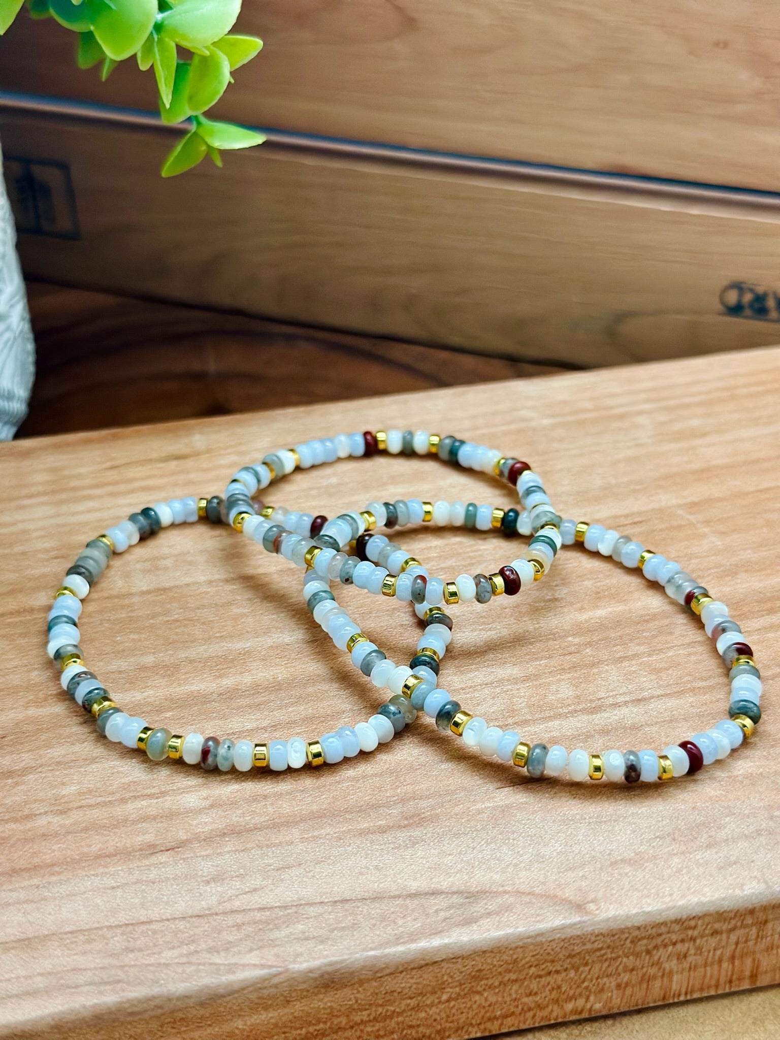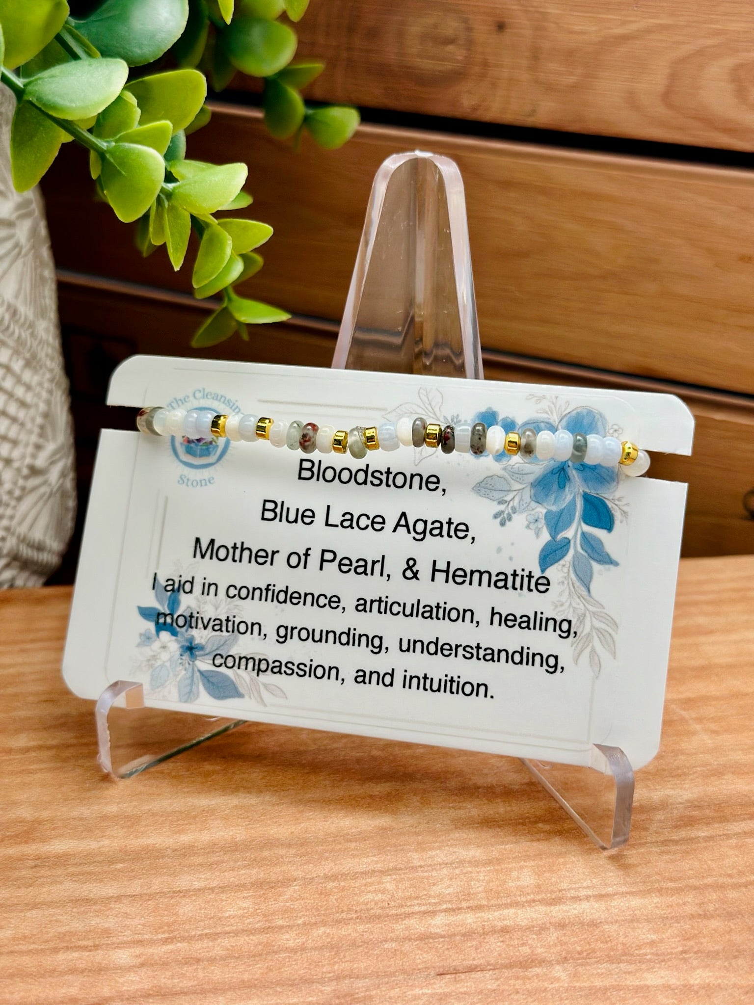 Bloodstone, Blue Lace Agate, Mother of Pearl, & Hematite Bracelet