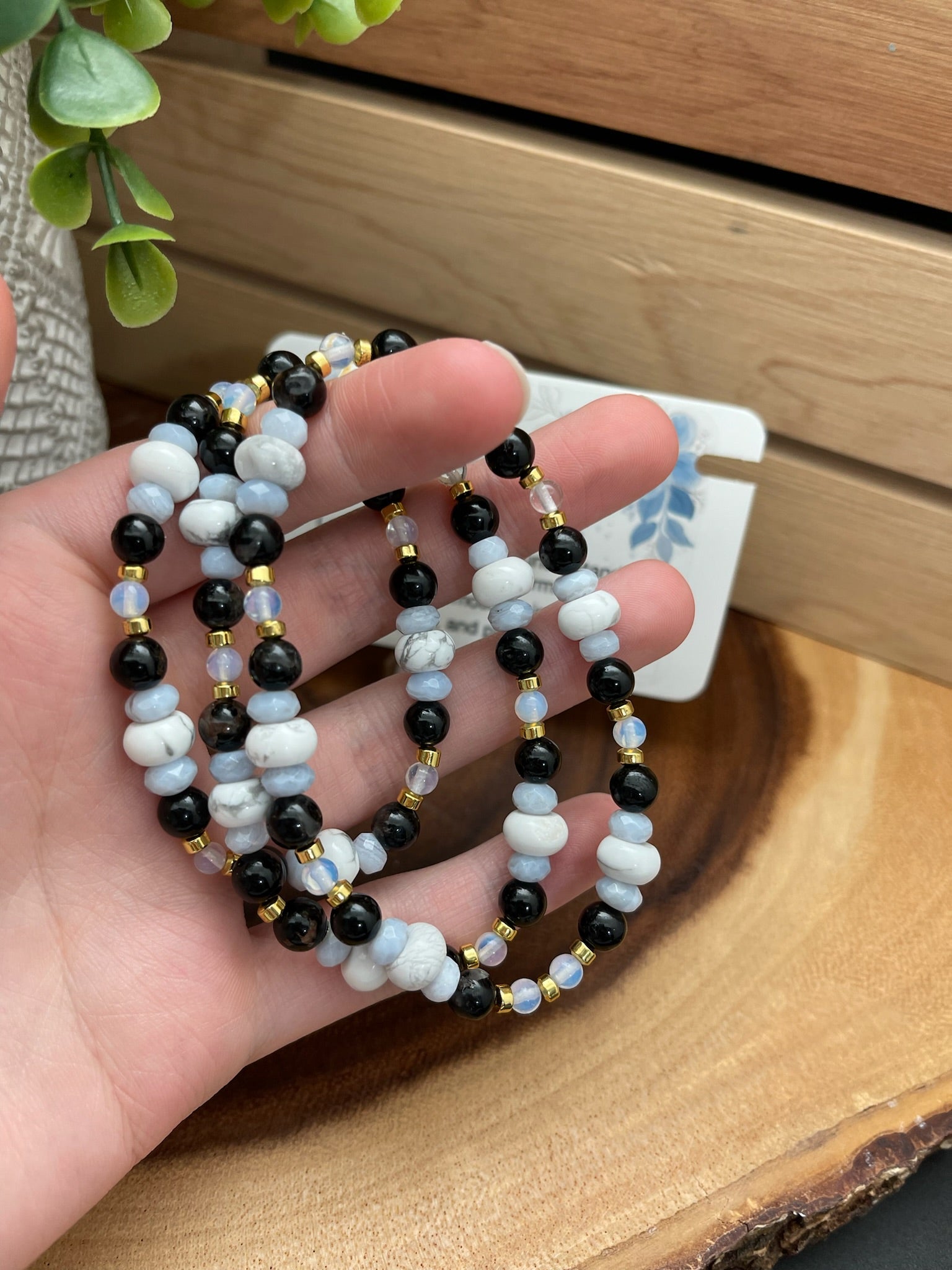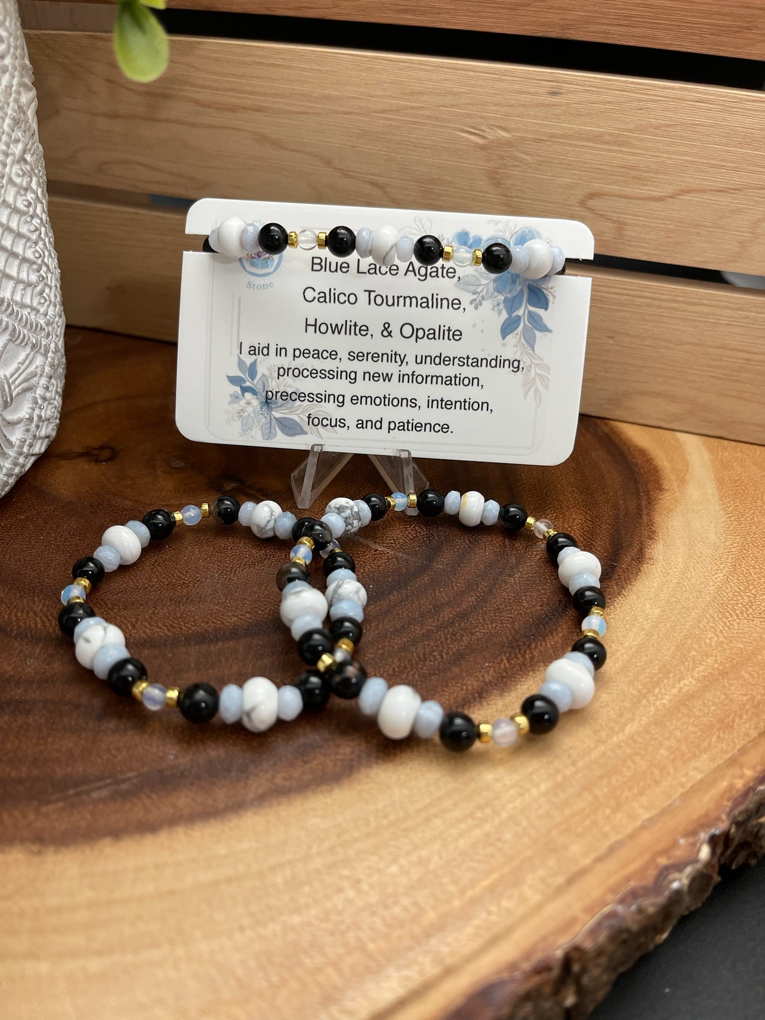 Blue Lace Agate, Calico Tourmaline, Howlite, and Opalite Bracelet