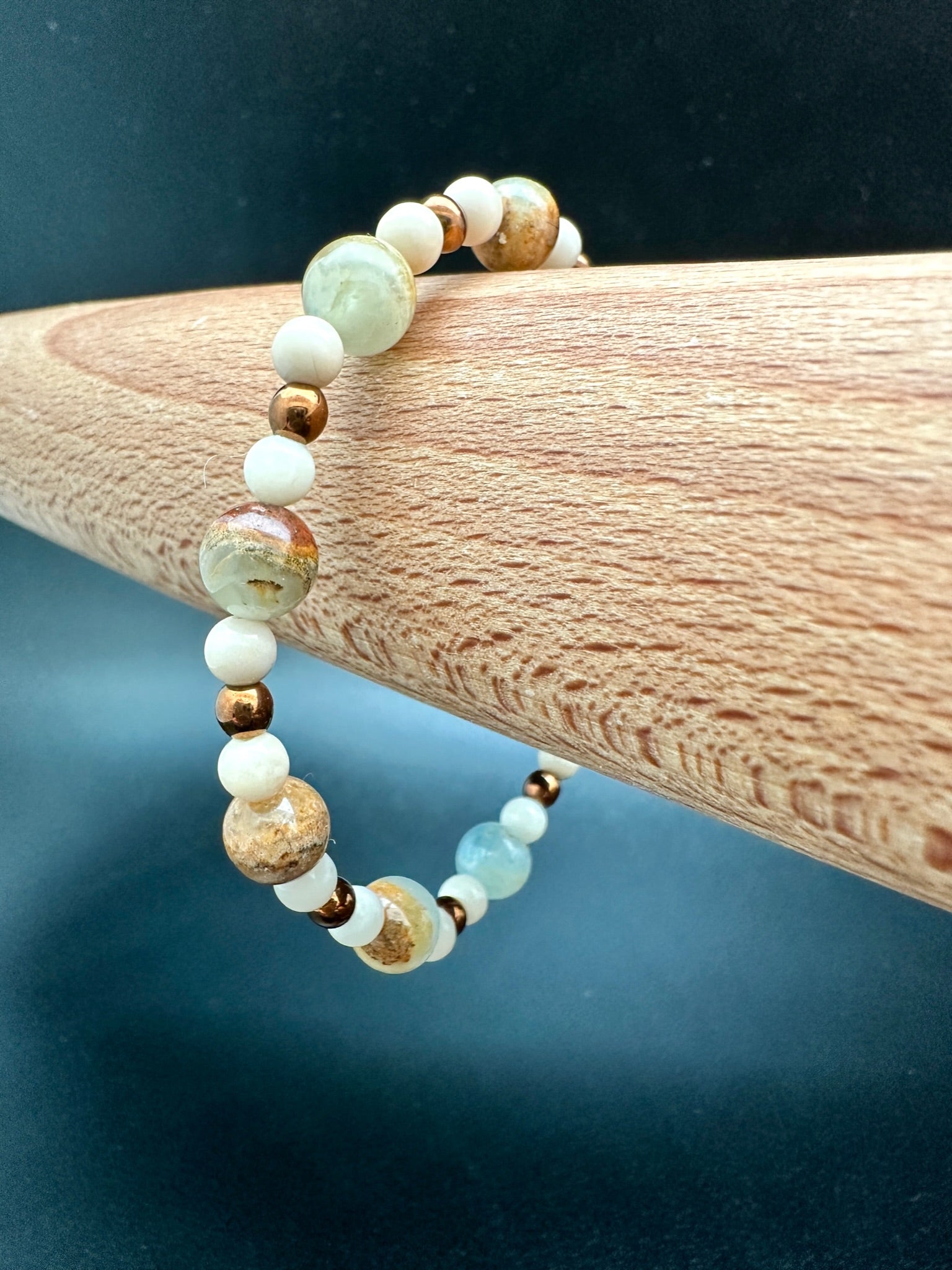 Blue Sky Onyx, Fossil Jasper and Hematite Bracelet