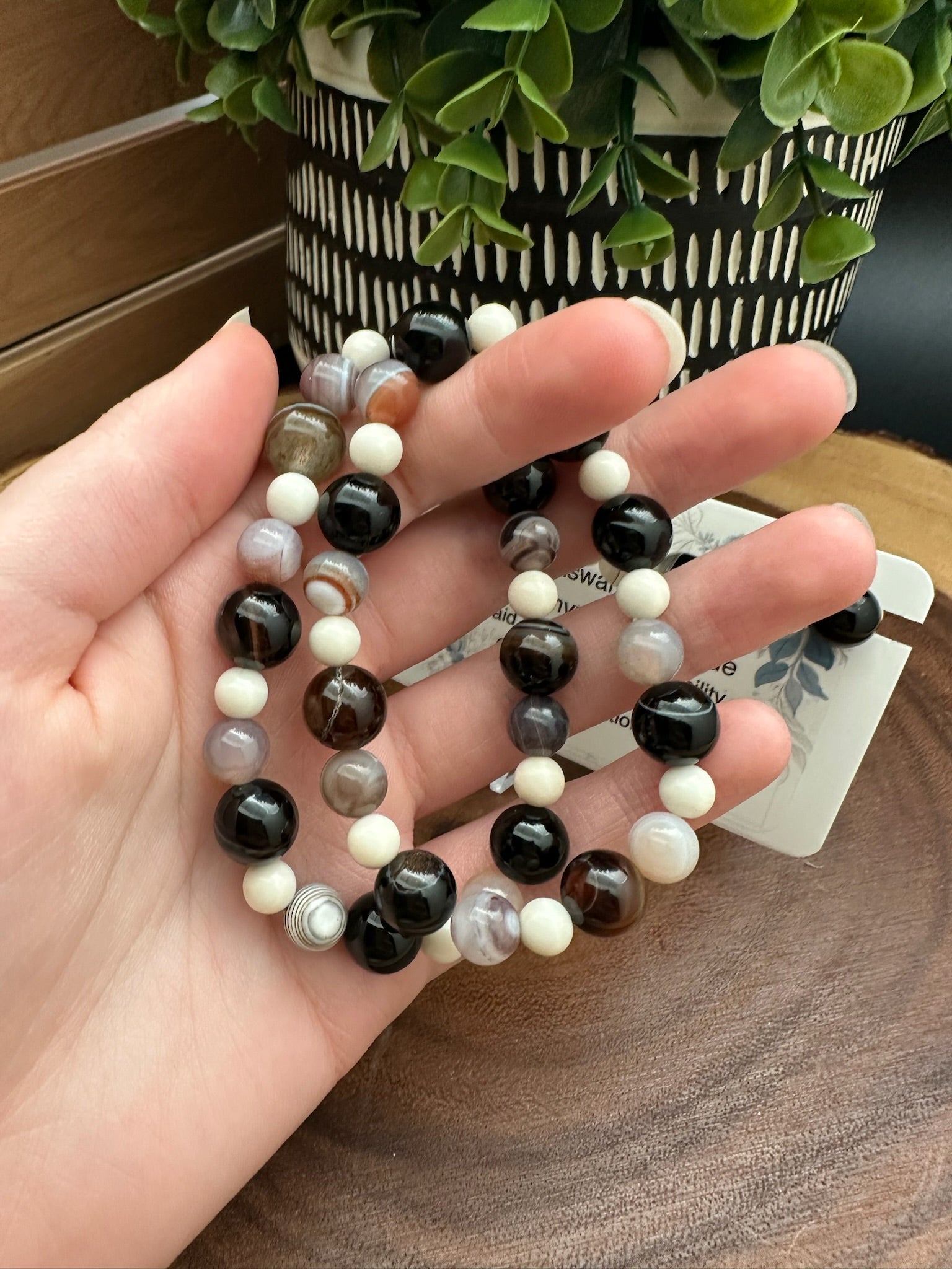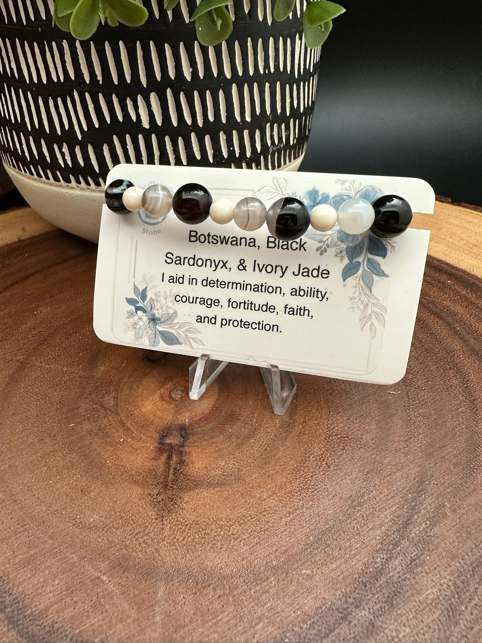 Botswana, Black Sardonyx and Ivory Jade Bracelet