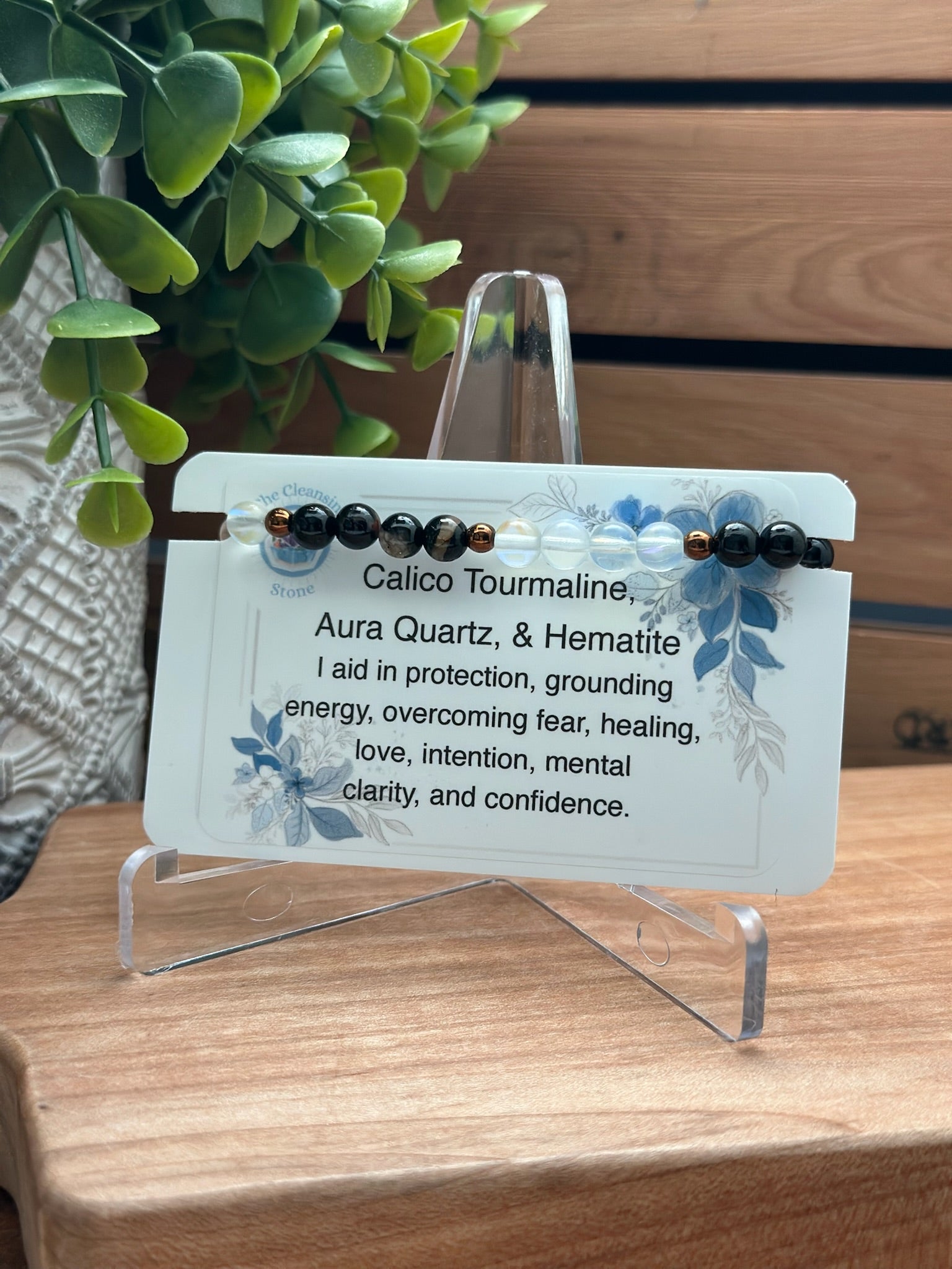 Calico Tourmaline, Aura Quartz, & Hematite Bracelet