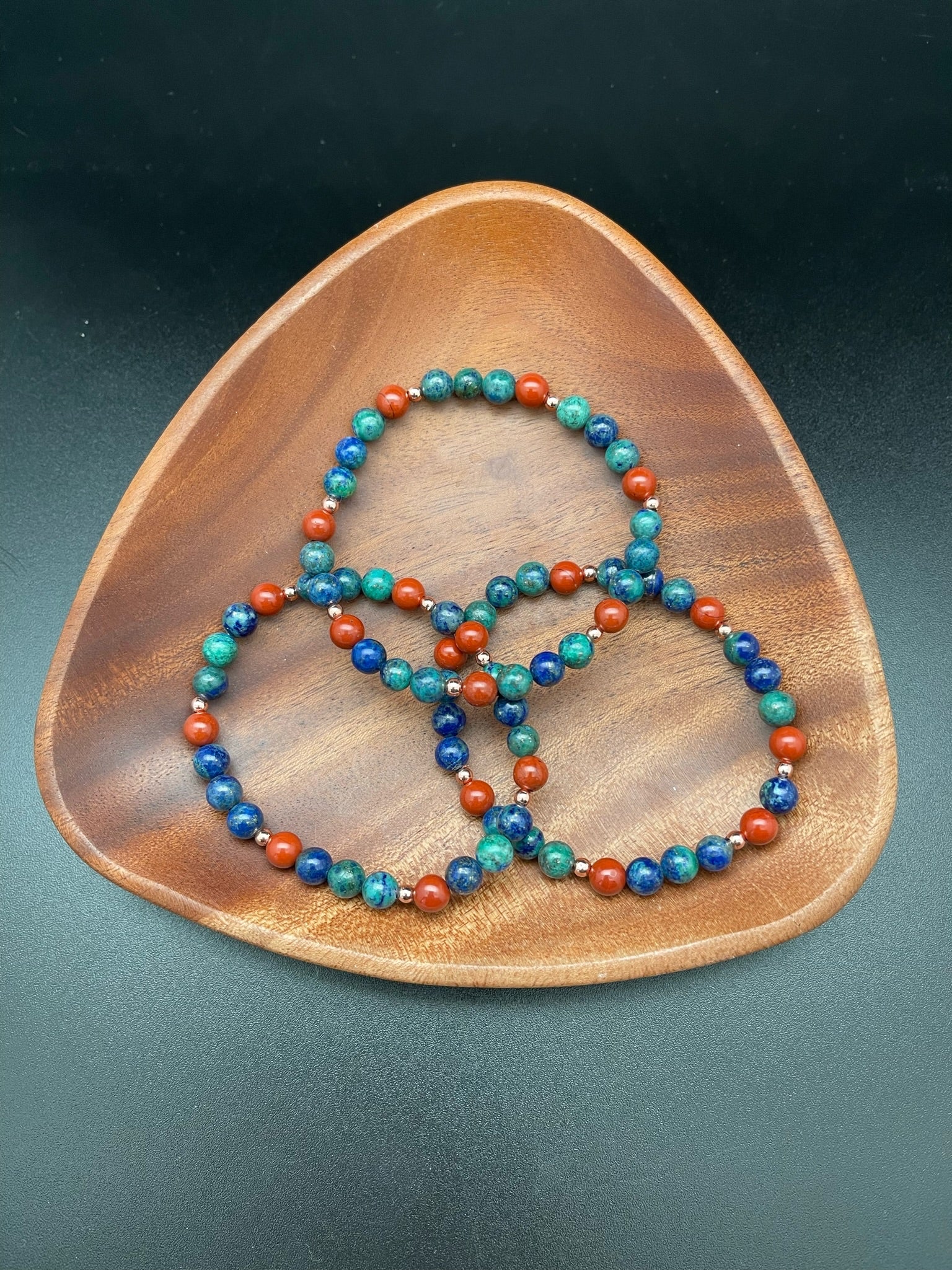 Chrysocolla, Red Jasper and Hematite Bracelet