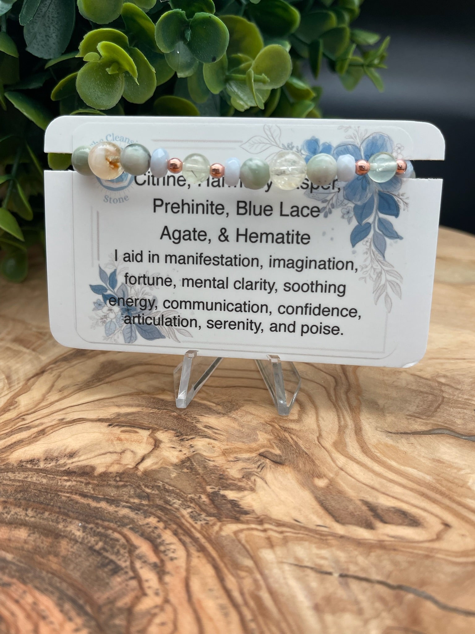 Citrine, Harmony Jasper, Prehnite, Blue Lace Agate, and Hematite Bracelet
