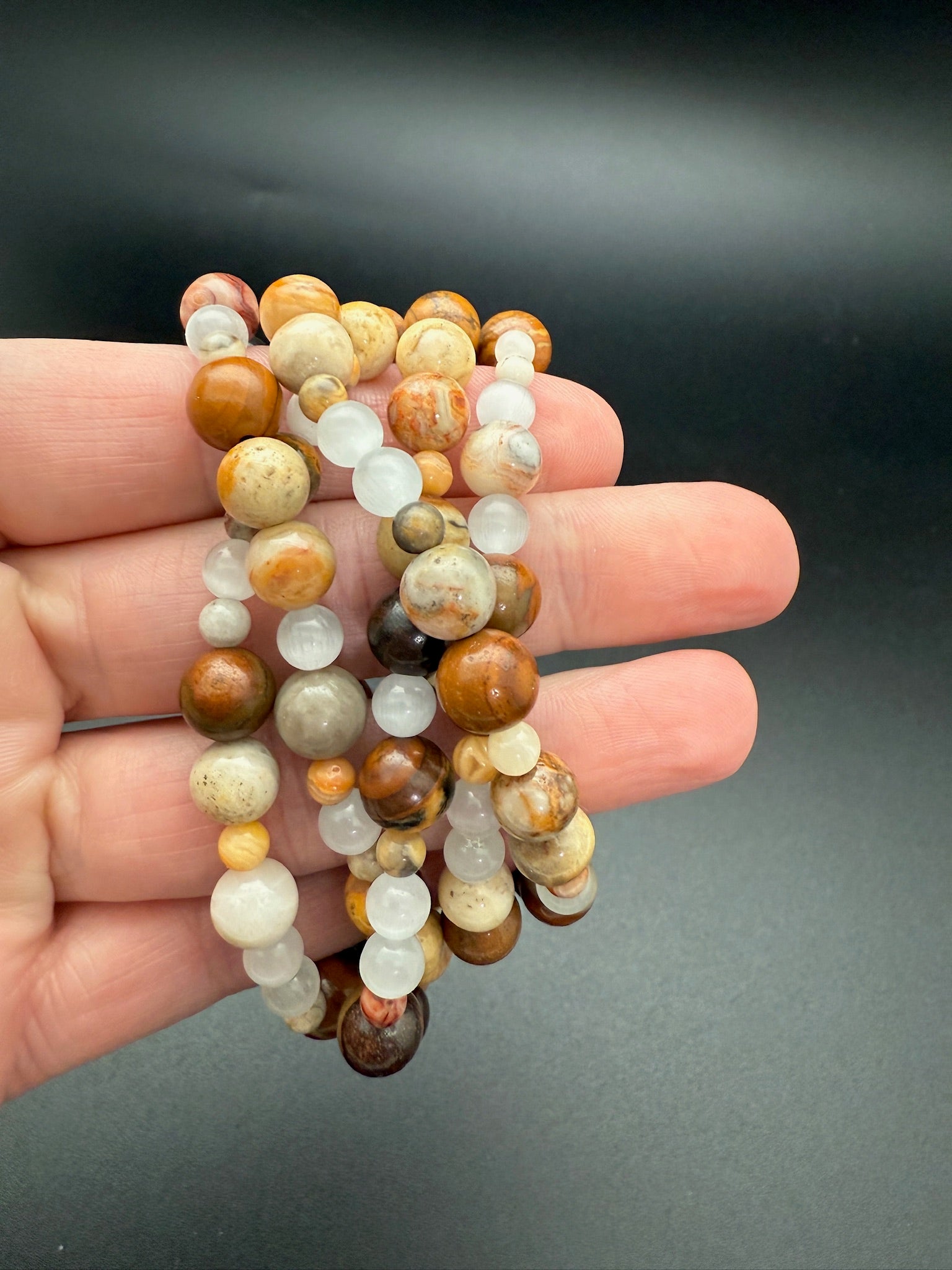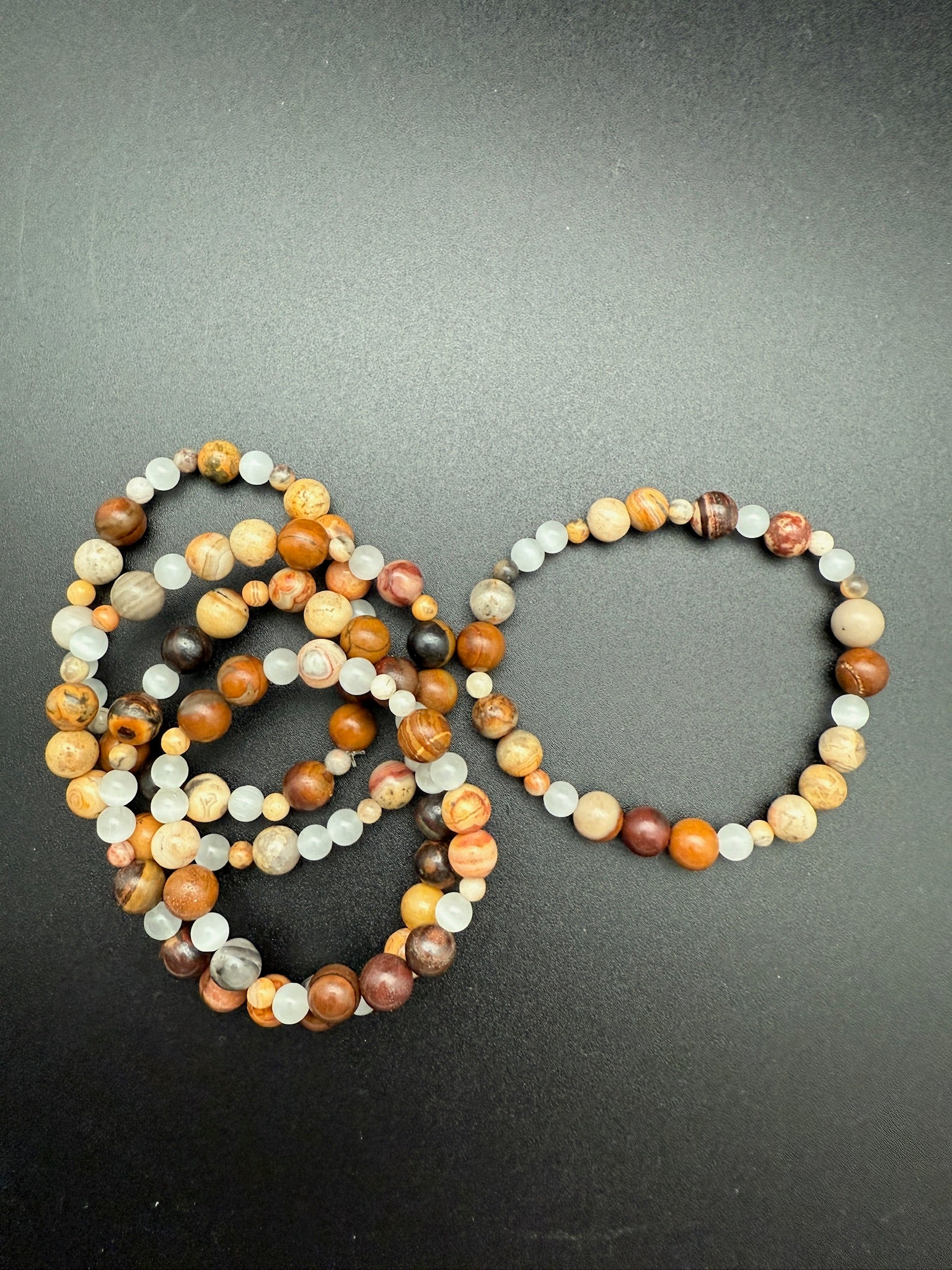 Crazy Lace, Satin Feldspar, and Tiger Iron Bracelet