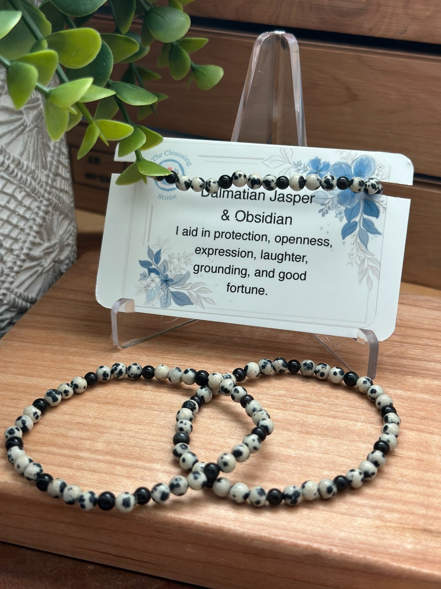 Dalmatian Jasper & Obsidian Bracelet