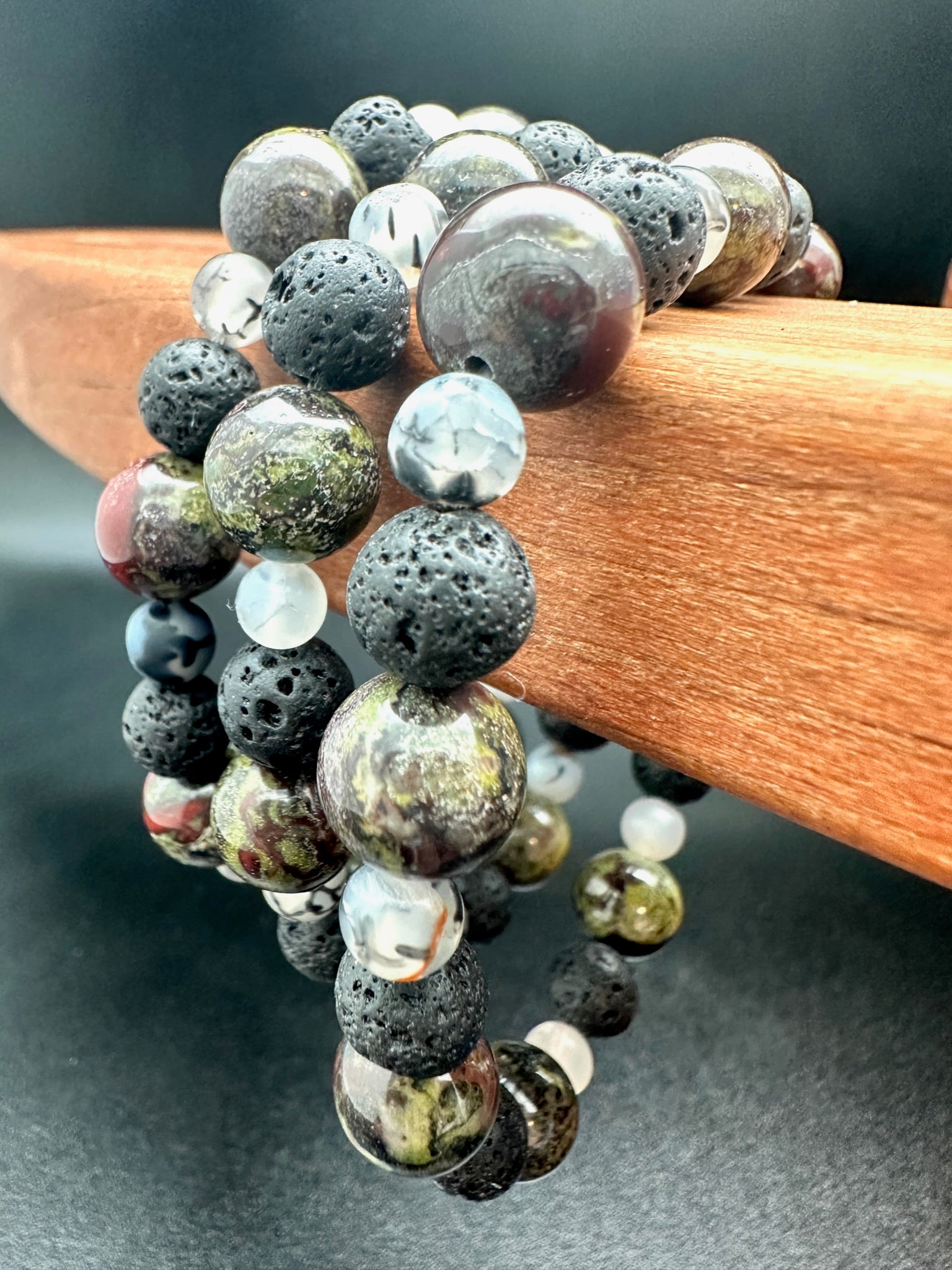 Dragon Bloodstone, Black Lava and Spiderweb Jasper Bracelet