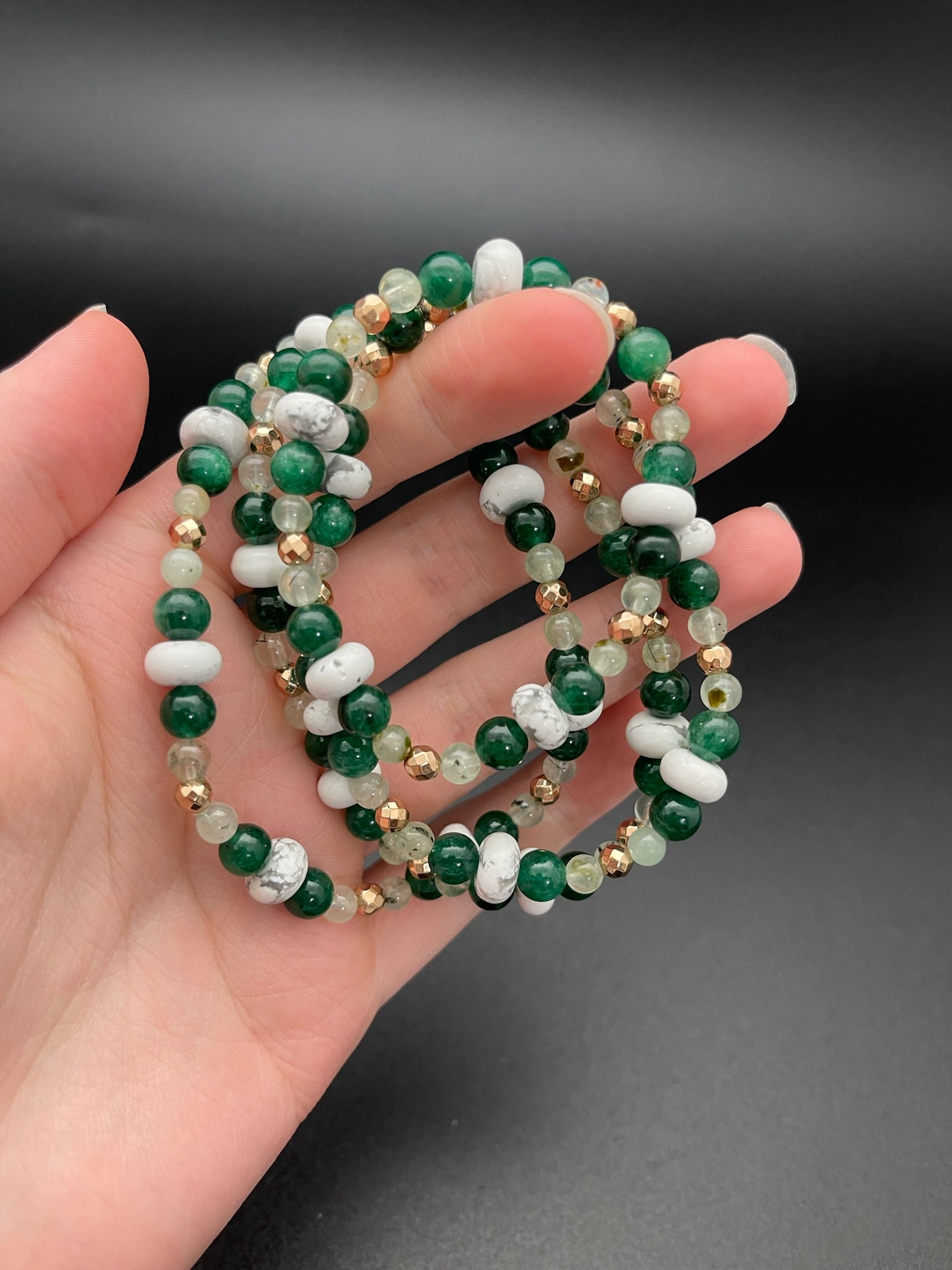 Howlite, Prehnite, Green Mica, and Hematite Bracelet