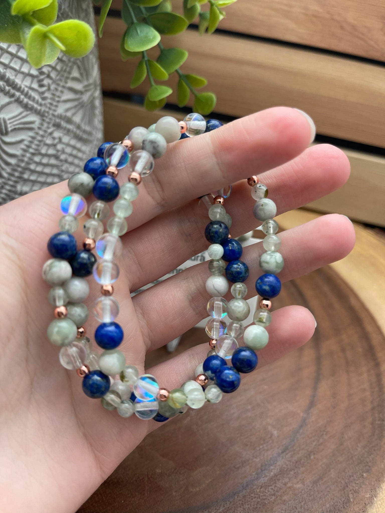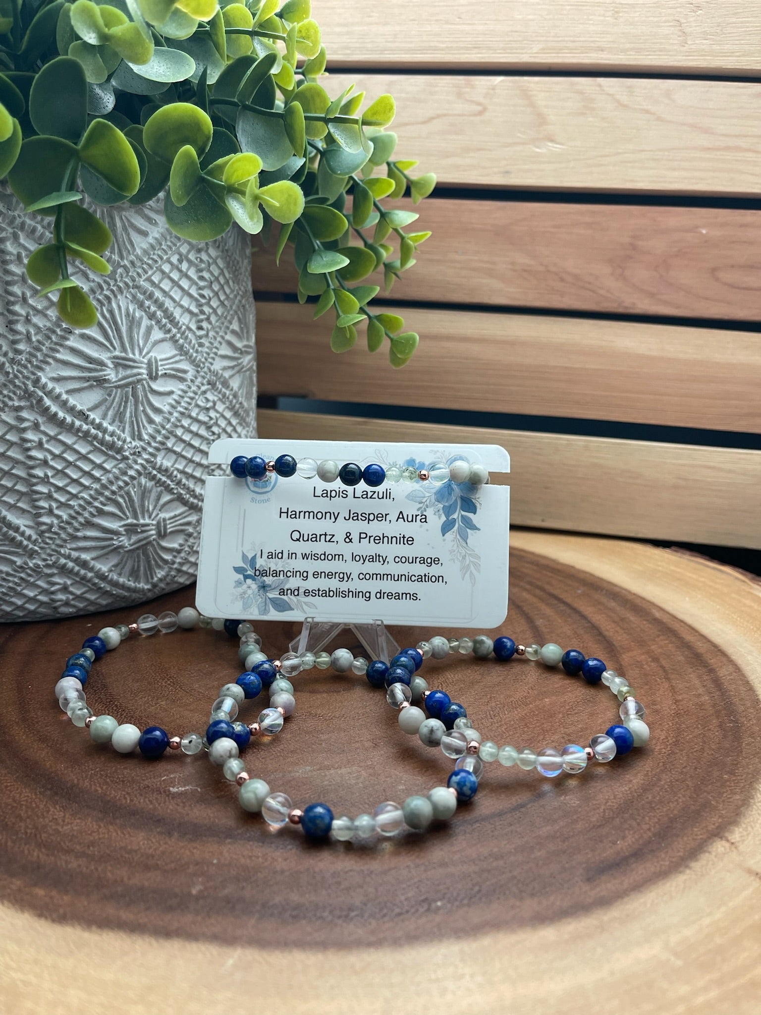 Lapis Lazuli, Harmony Jasper, Aura Quartz, and Prehnite Bracelet