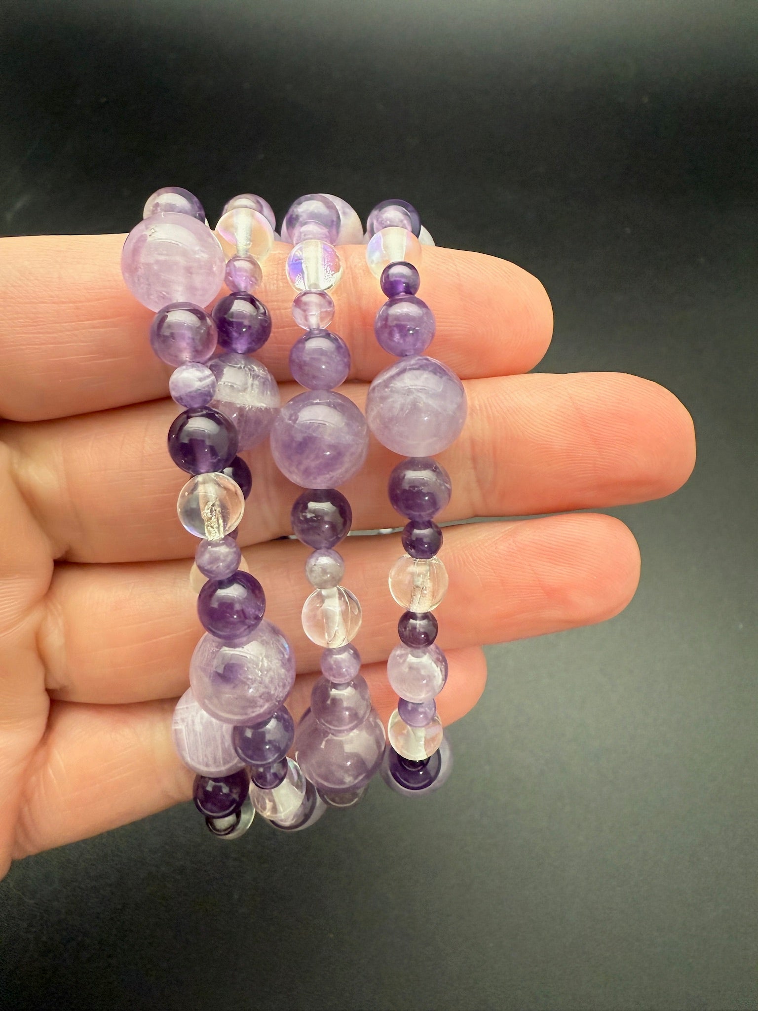 Lavender Amethyst, Chevron Amethyst, G4 Amethyst, and Aura Quartz Bracelet