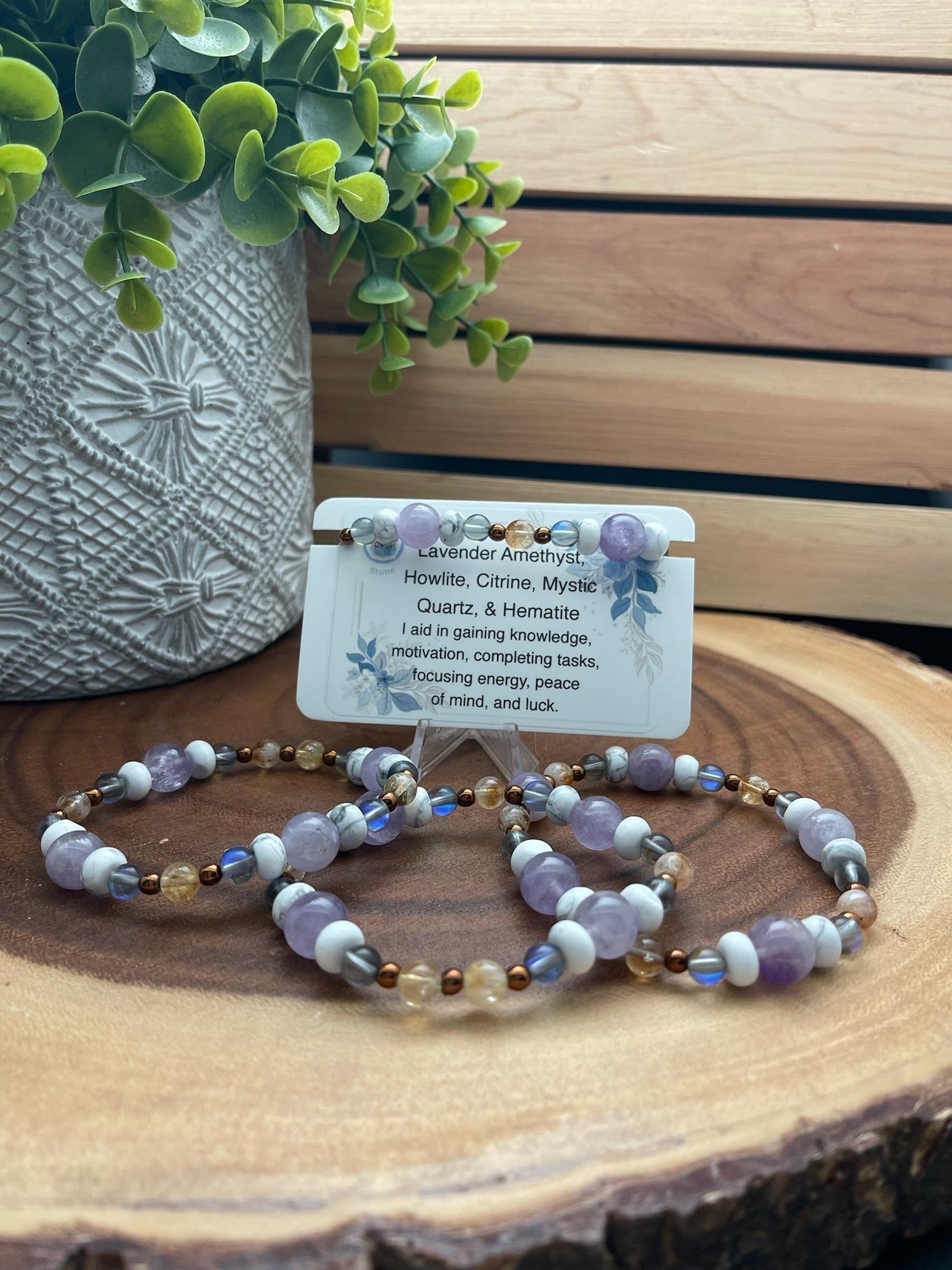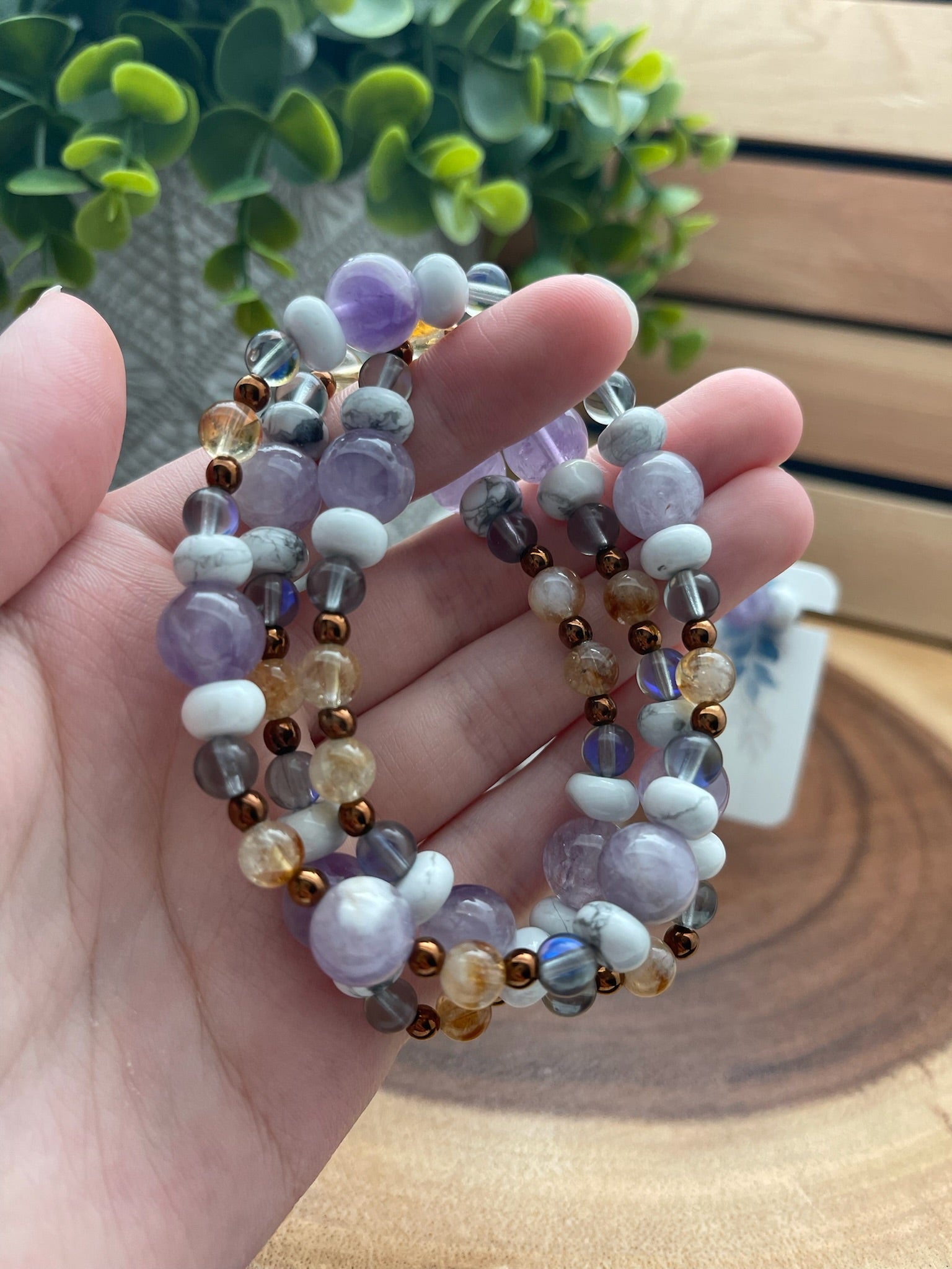 Lavender Amethyst, Howlite, Citrine, Mystic Quartz, and Hematite Bracelet