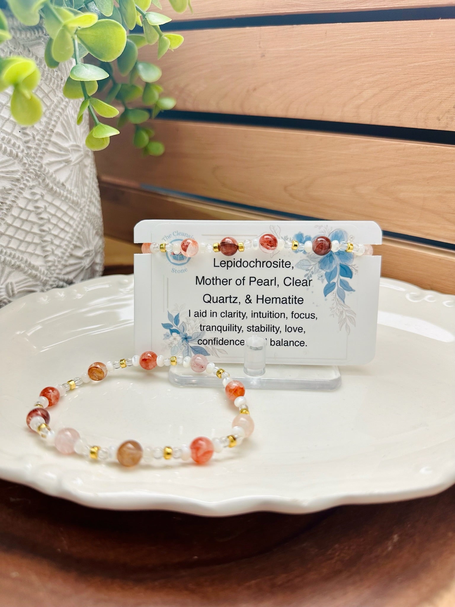 Lepidochrosite, Mother of Pearl, Clear Quartz, and Hematite Bracelet