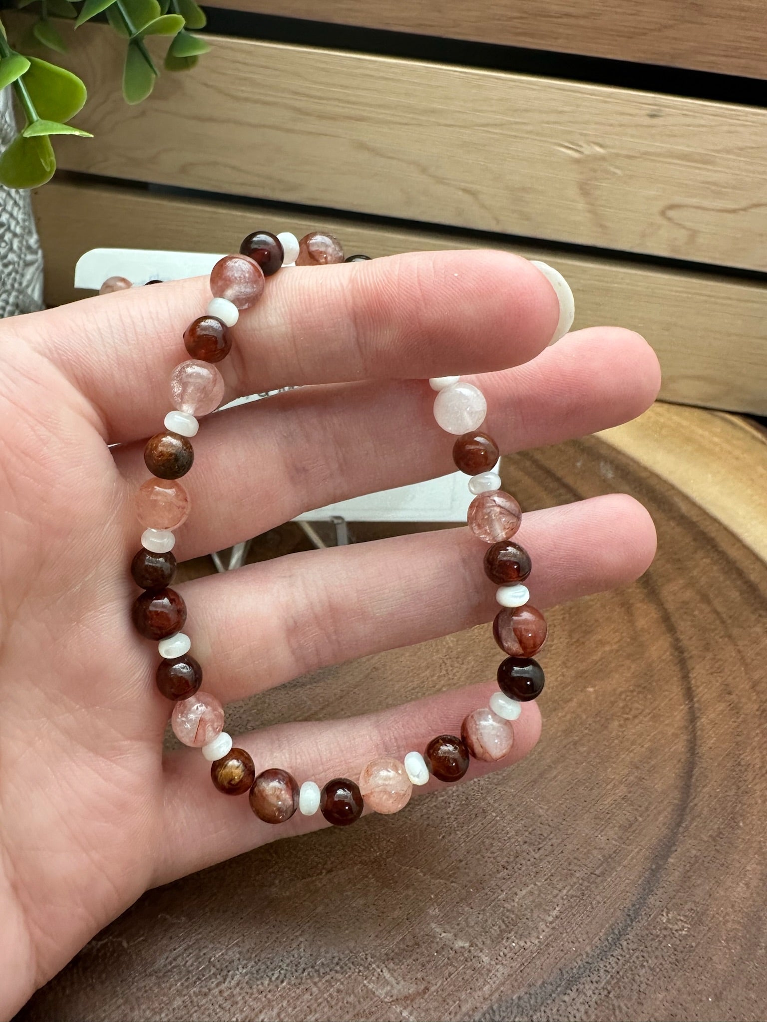 Lepodocrosite, Hessonite Granet and Mother of Pearl Bracelet