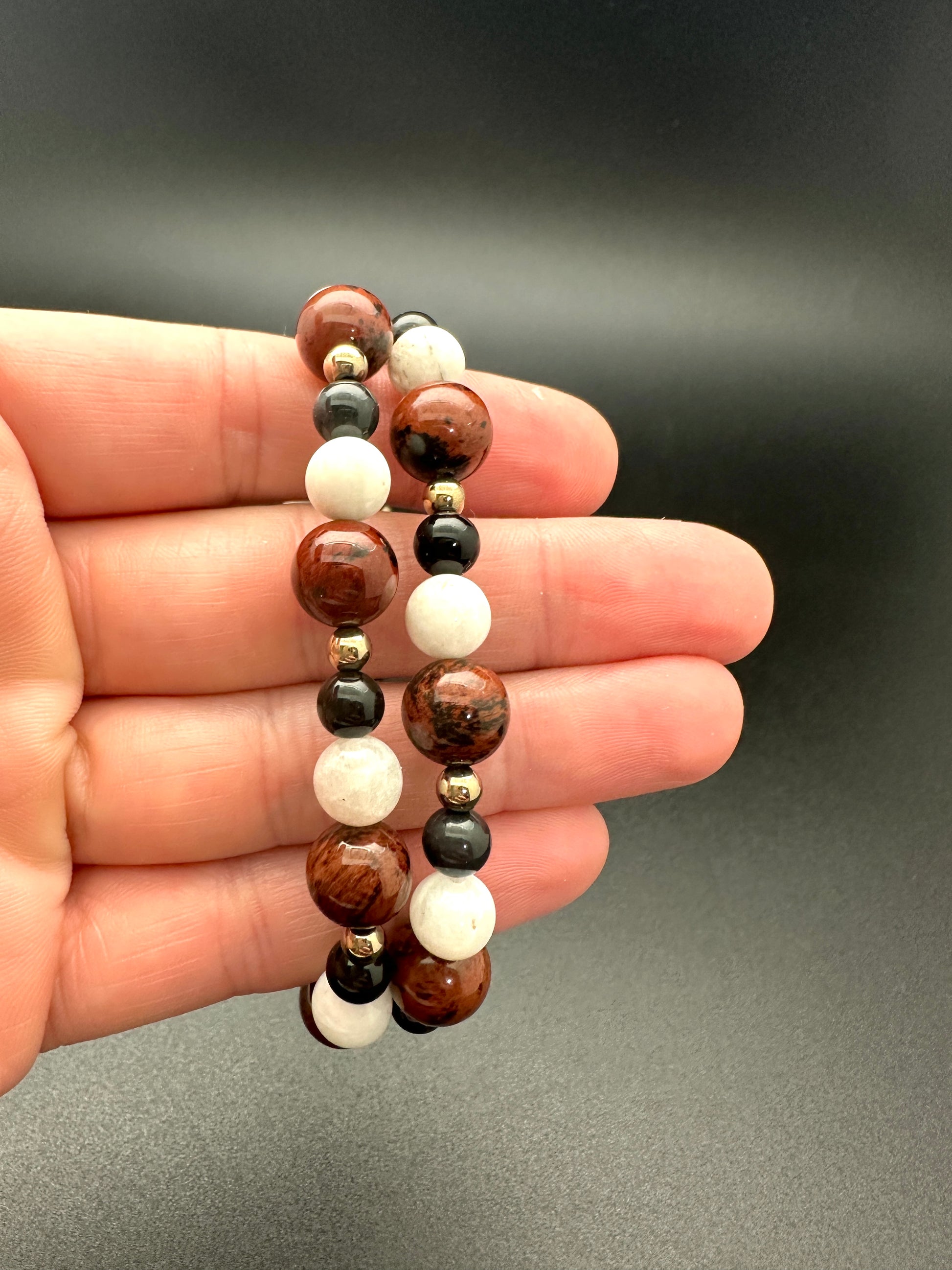 Mahogany Obsidian, Silver Obsidian, Creamy Moonstone and Hematite Bracelet