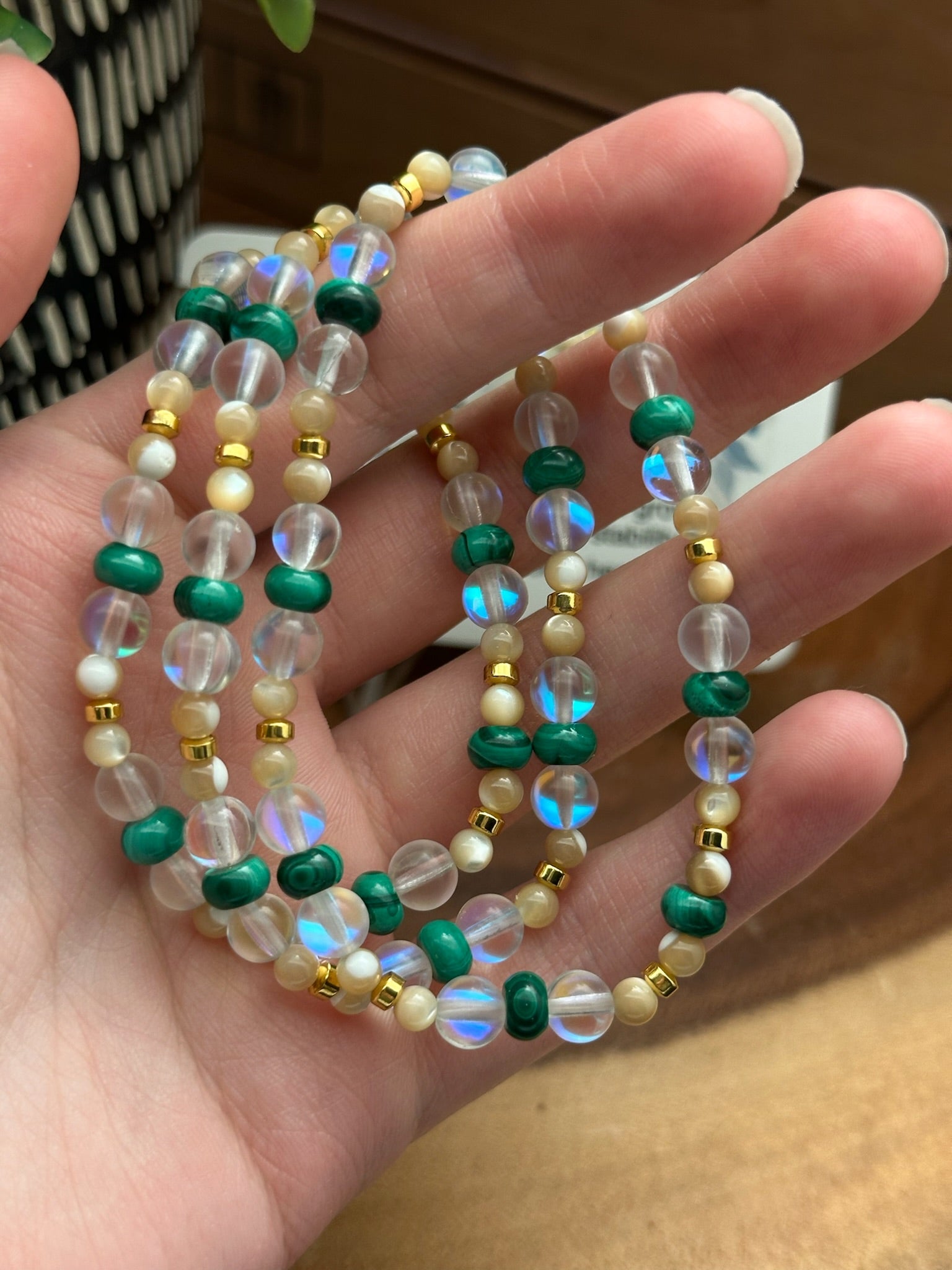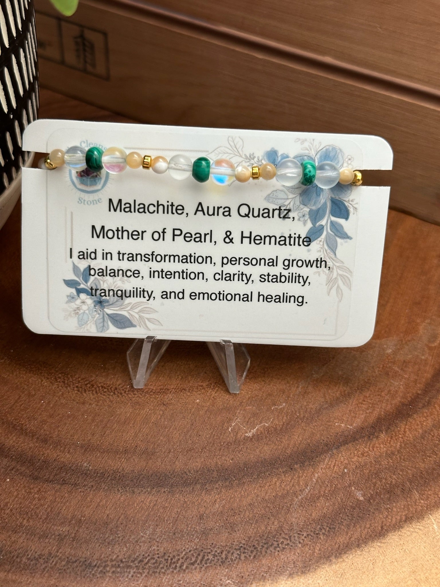 Malachite, Aura Quartz, Mother of Pearl, & Hematite Bracelet