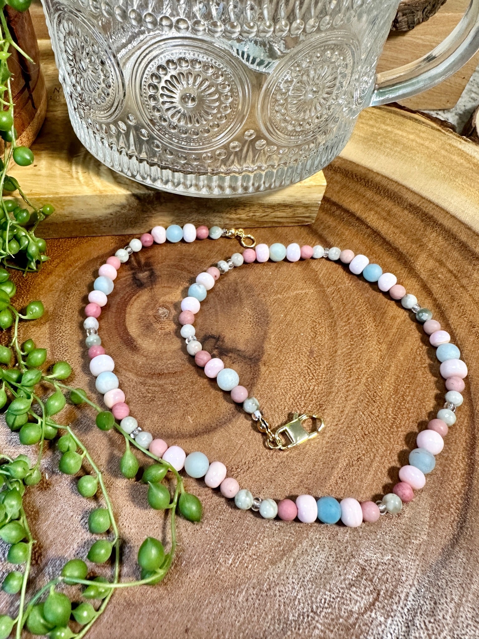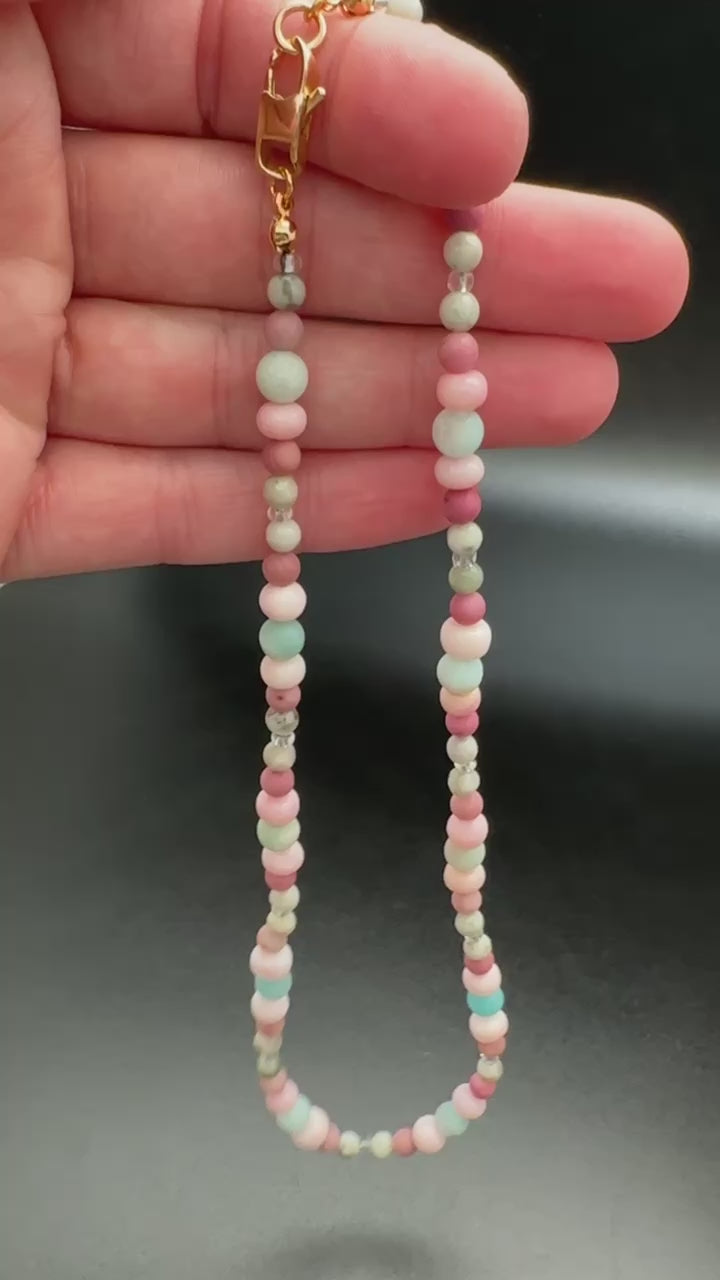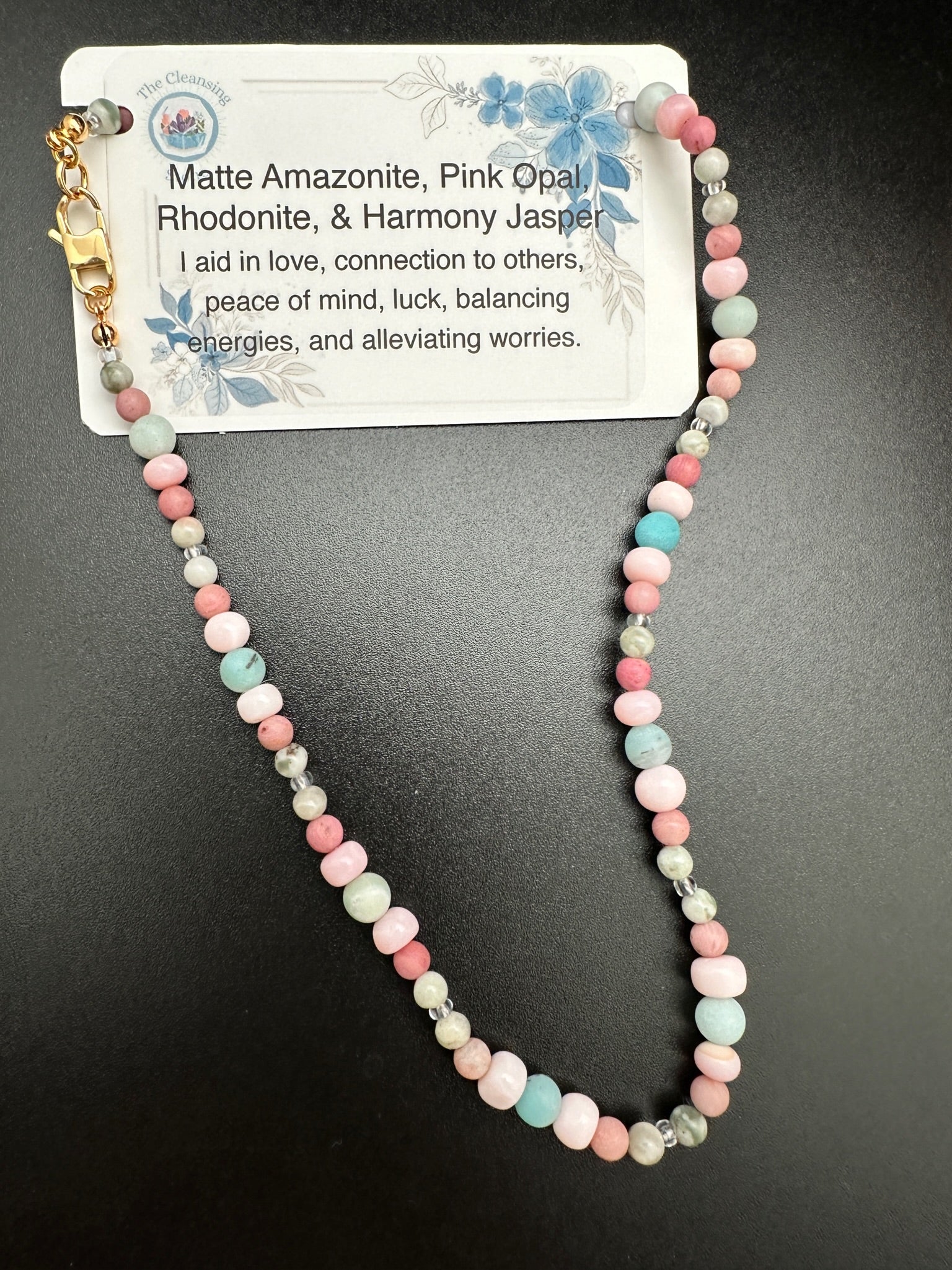 Matte Amazonite, Pink Opal, Rhodonite and Harmony Jasper Necklace