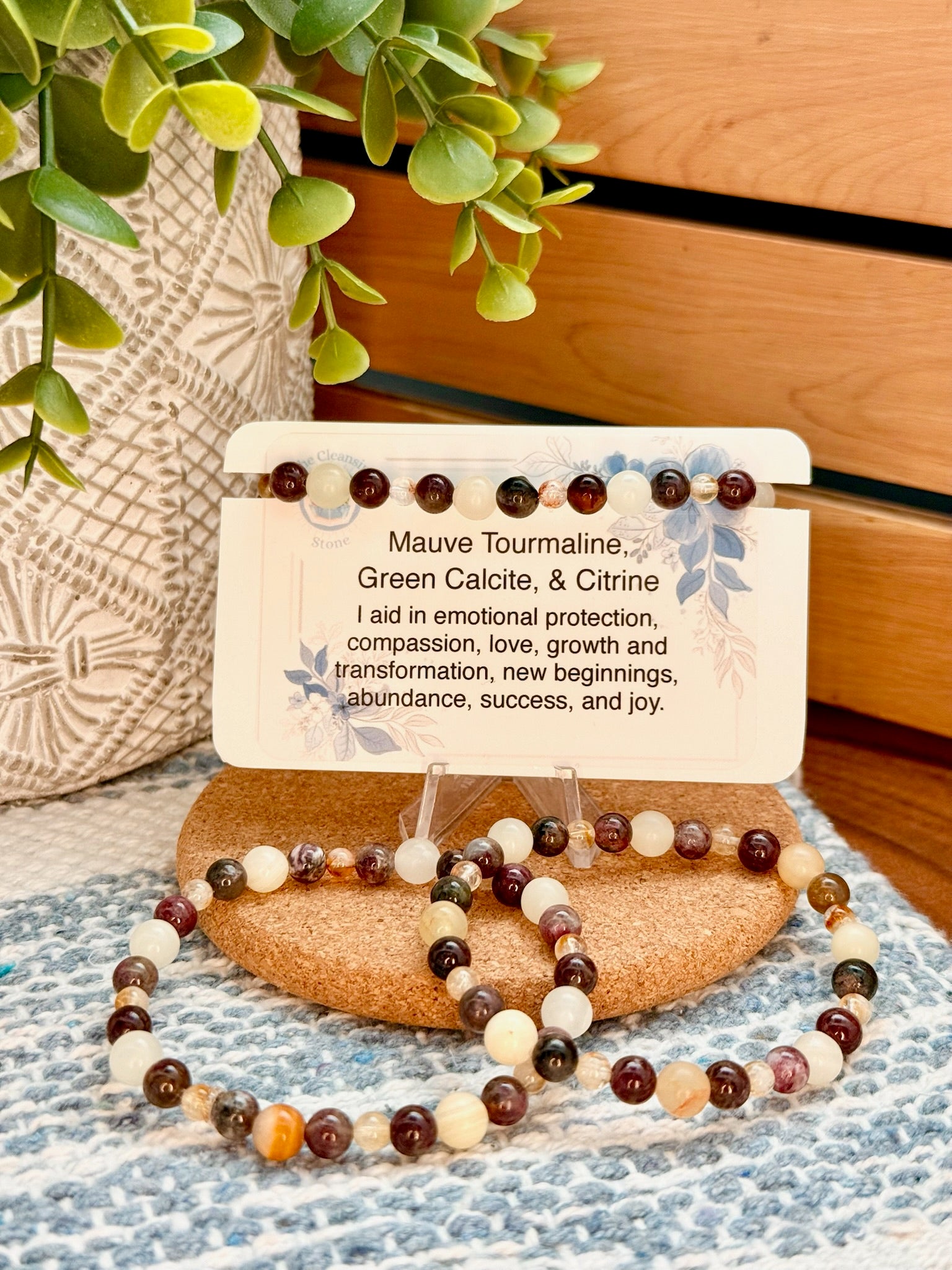Mauve Tourmaline, Green Calcite, & Citrine Bracelet