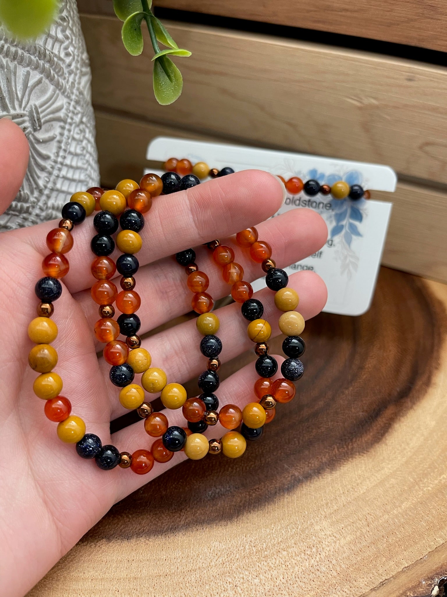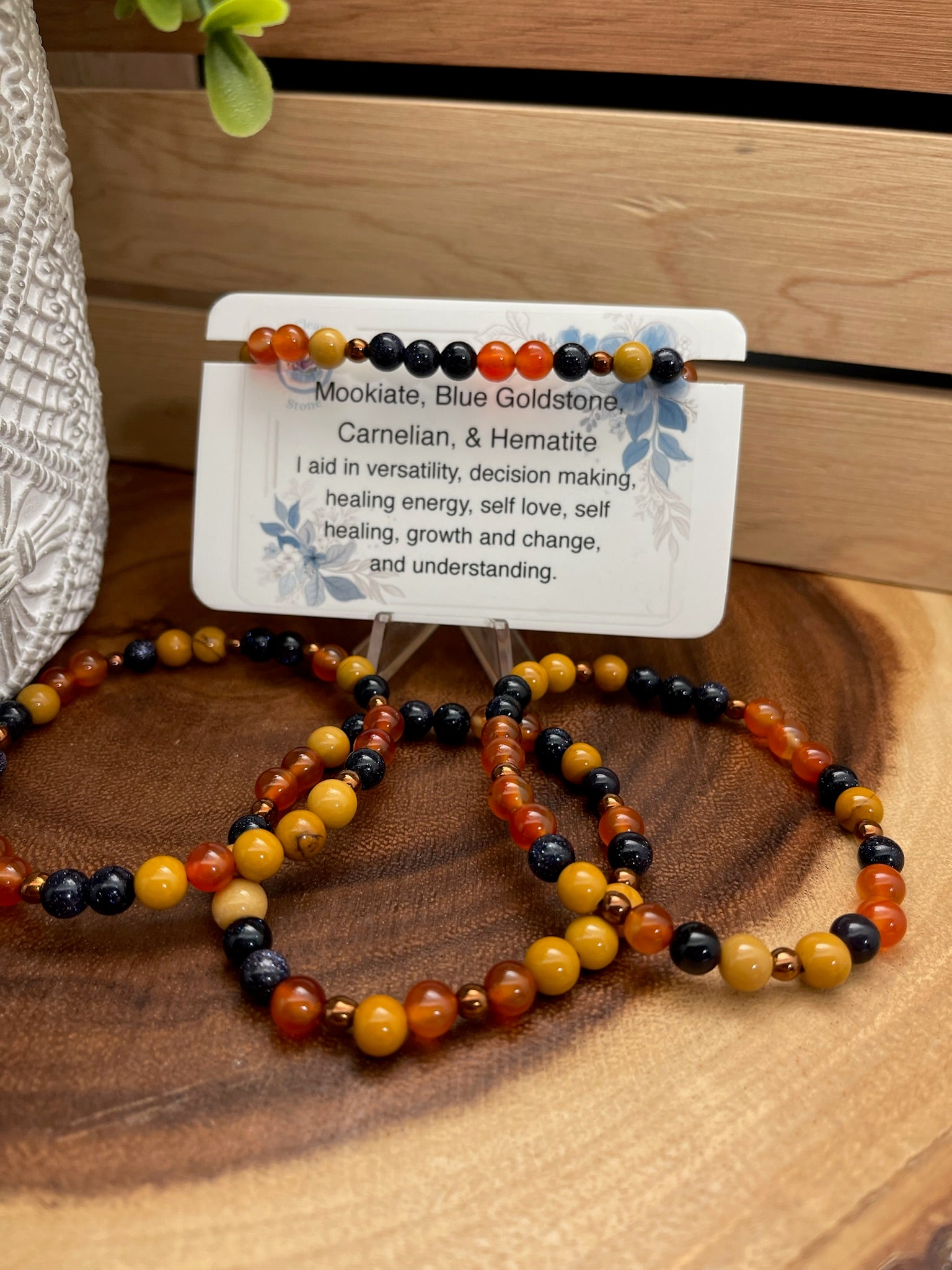 Mookiate, Blue Goldstone, Carnelian, & Hematite Bracelet