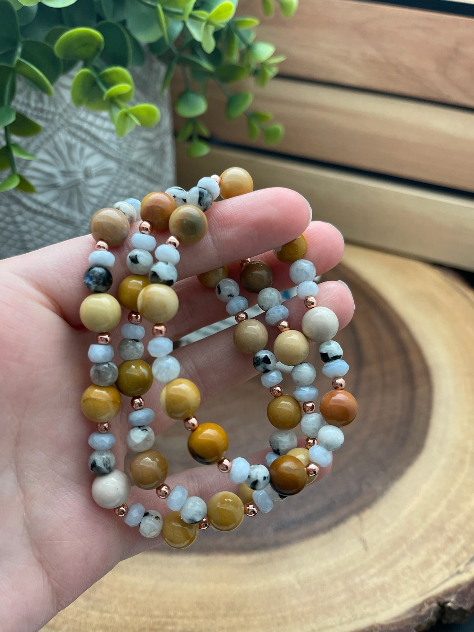 Mookiate, Blue Lace Agate, Tourmalated Moonstone, and Hematite Bracelet