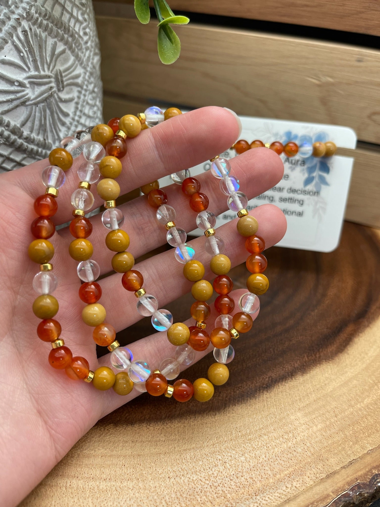 Mookiate, Carnelian, Aura Quartz, and Hematite Bracelet