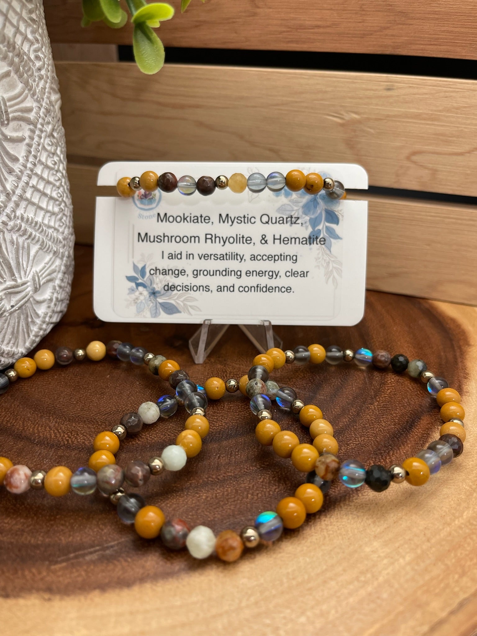 I aid in versatility, accepting change, grounding energy, clear decisions, and confidence.