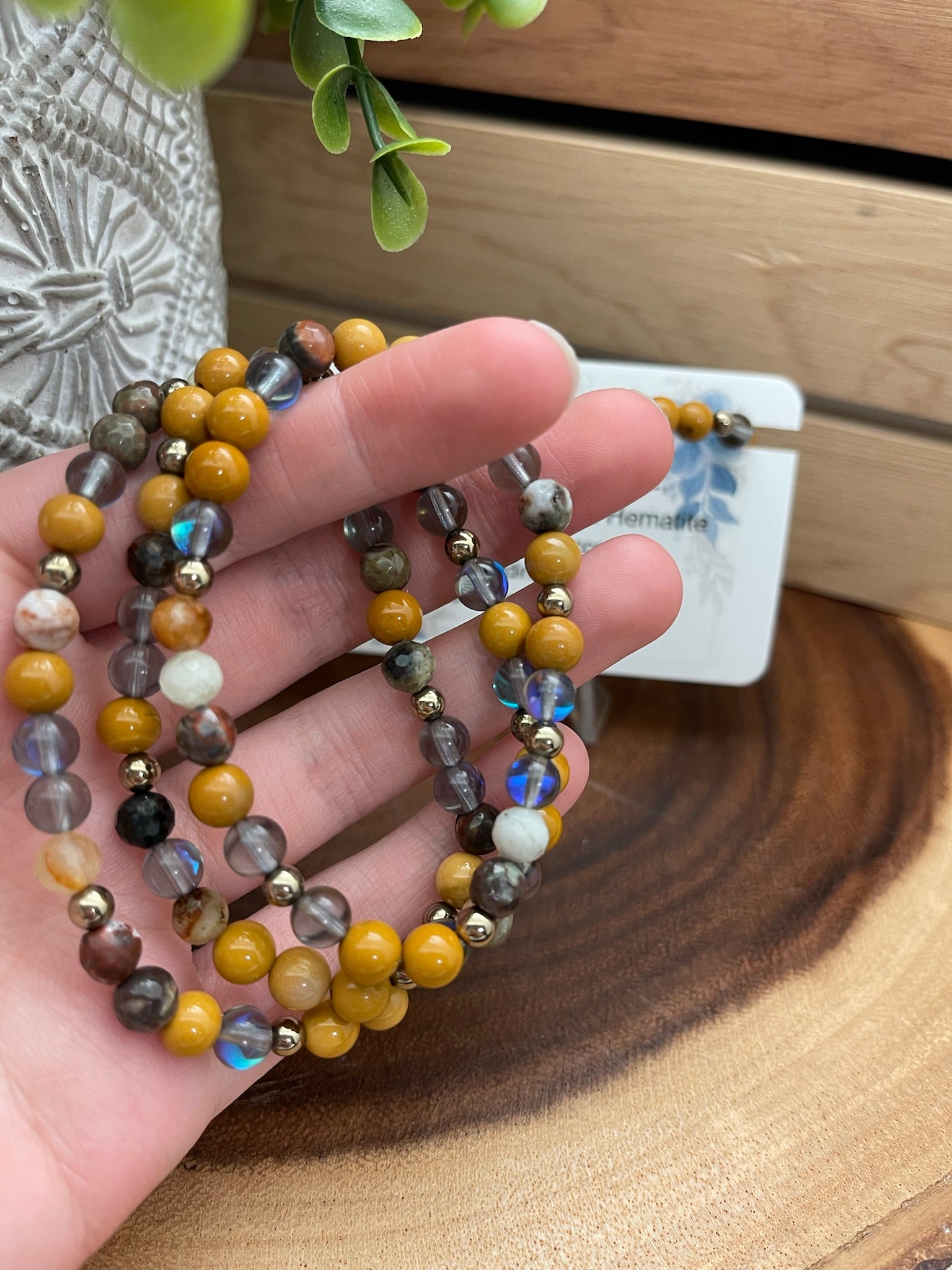 Mookiate, Mystic Quartz, Mushroom Rhyolite, and Hematite Bracelet