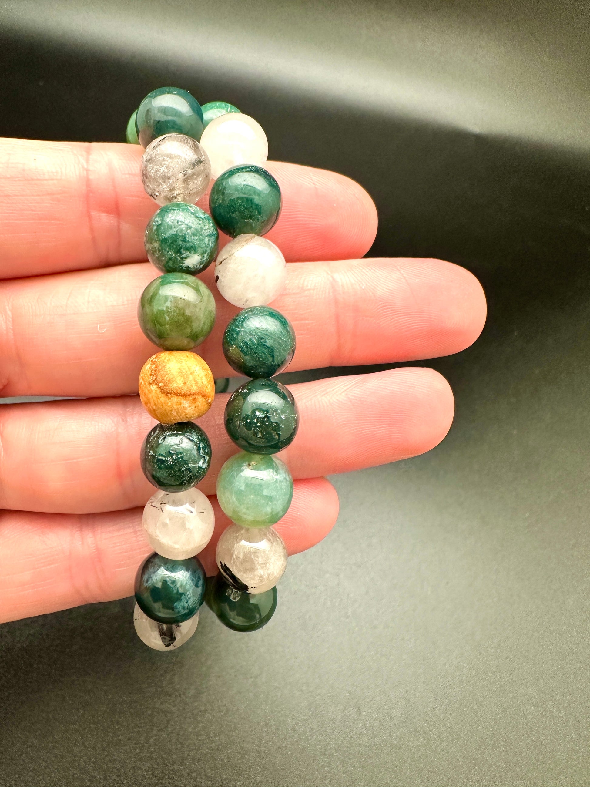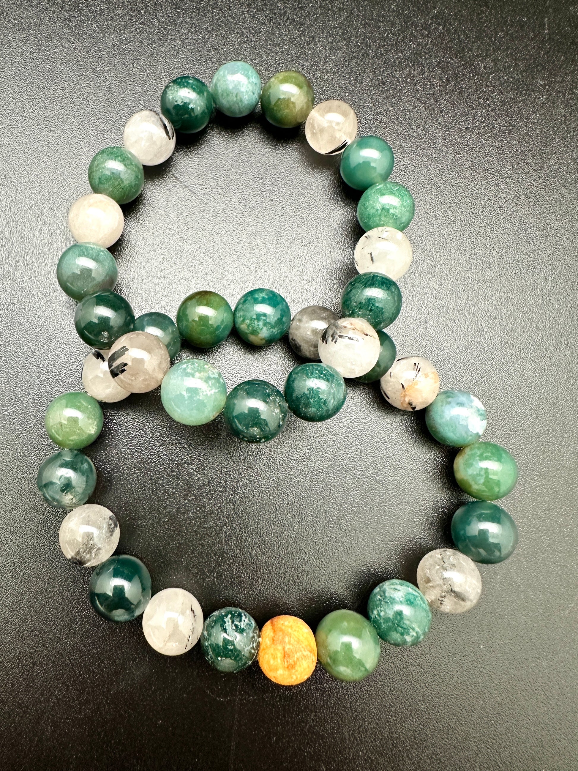 Moss Agate and Tourmalated Quartz Bracelet