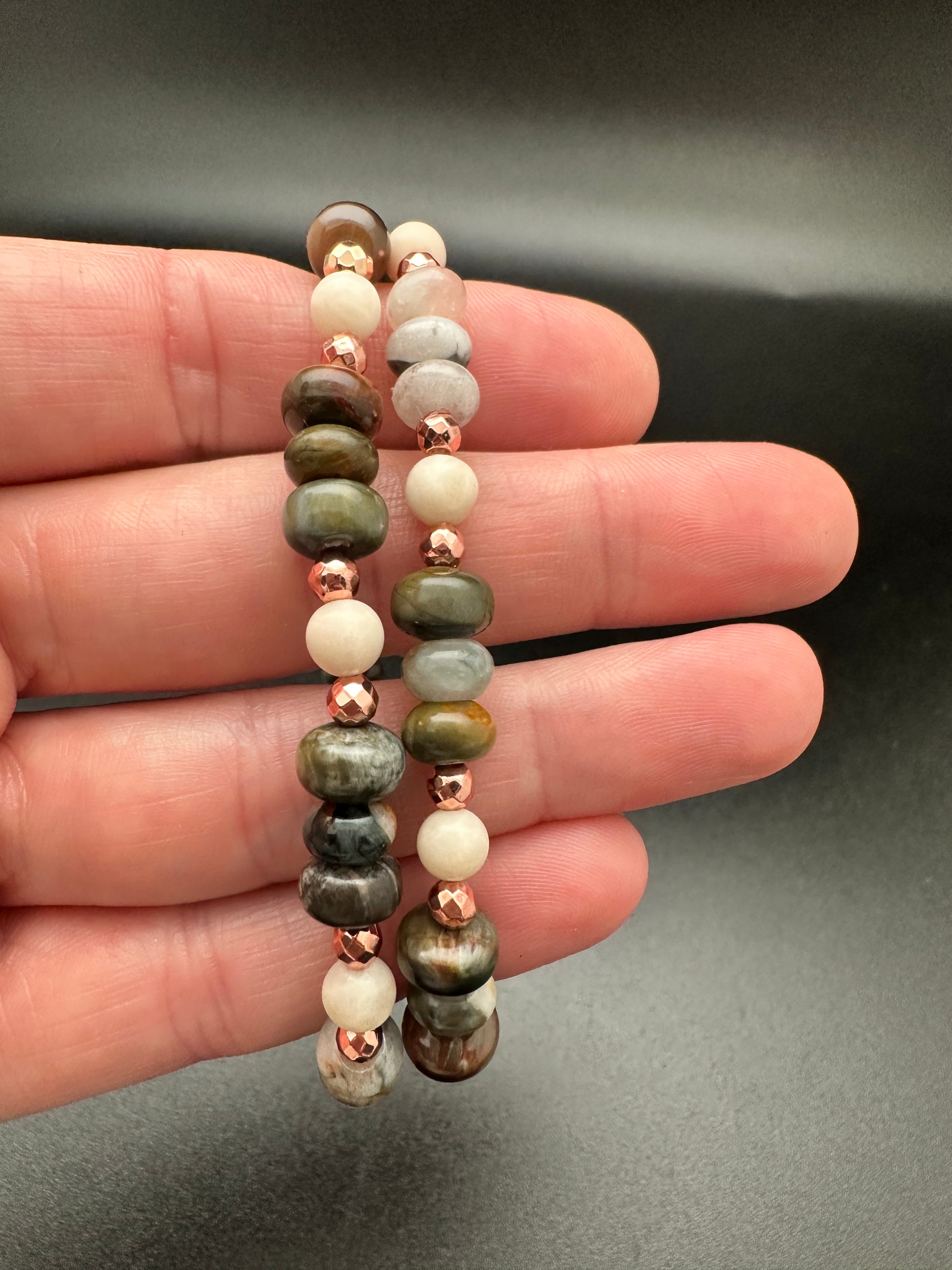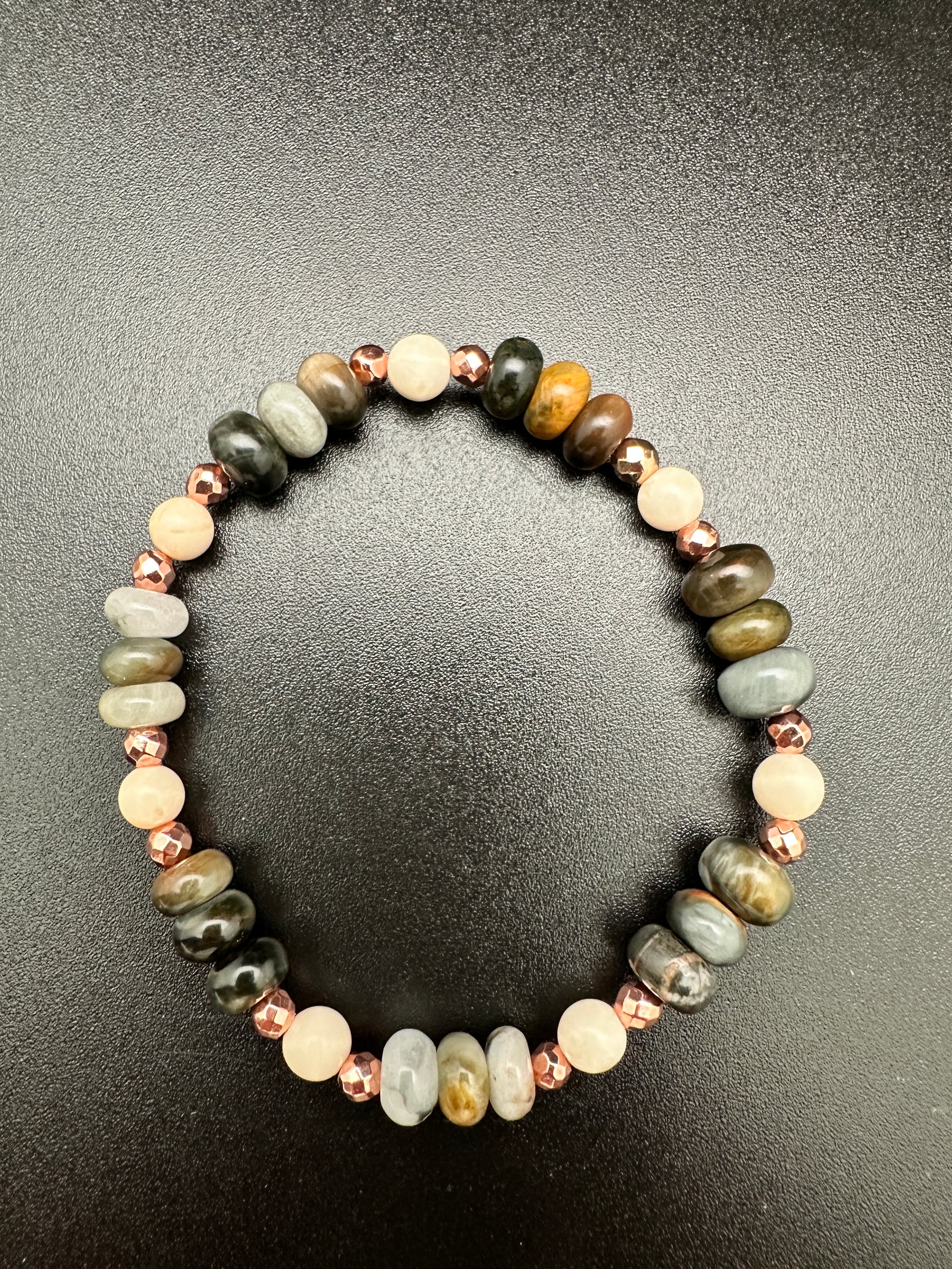Mushroom Rhyolite, Fossil Jasper and Hematite Bracelet
