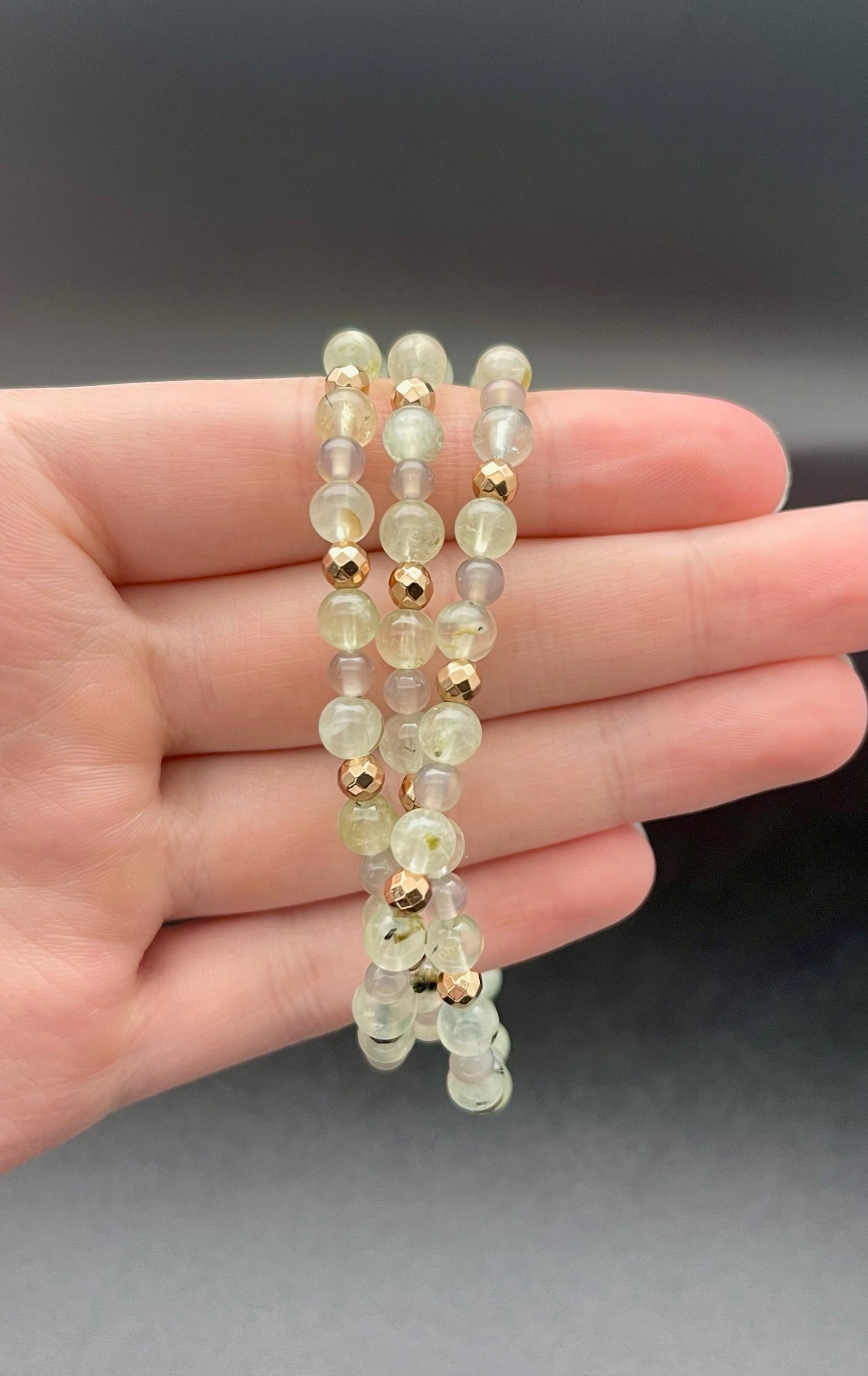 Prehinite, Grey Chalcedony, and Hematite Bracelet