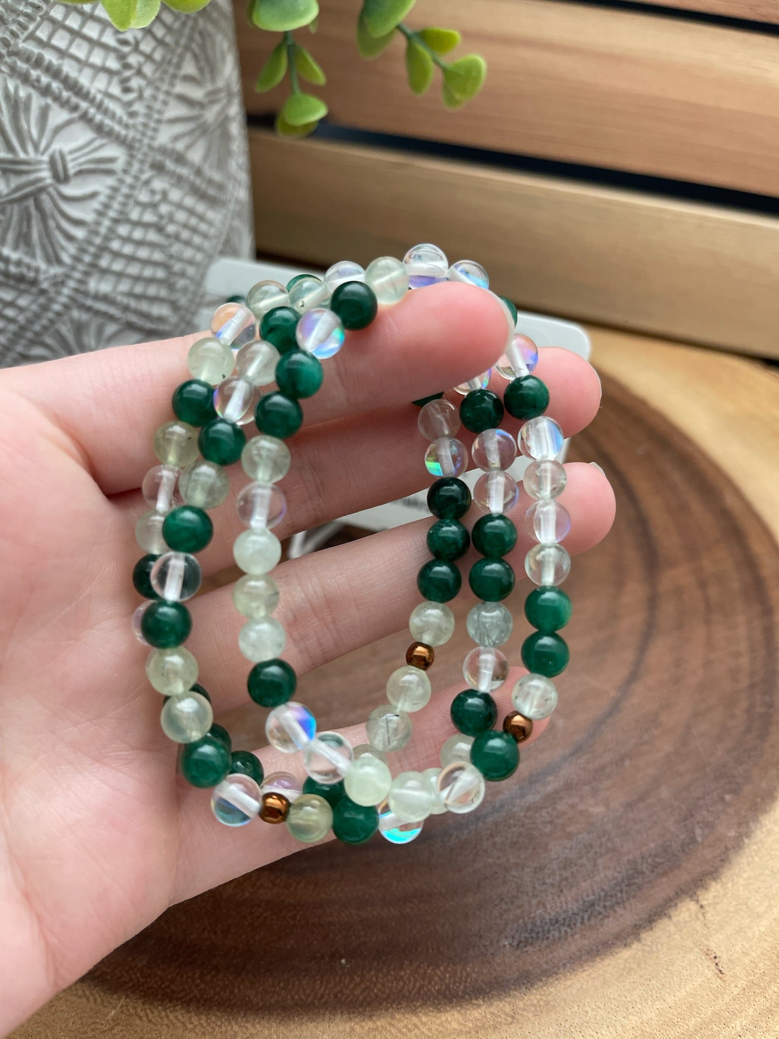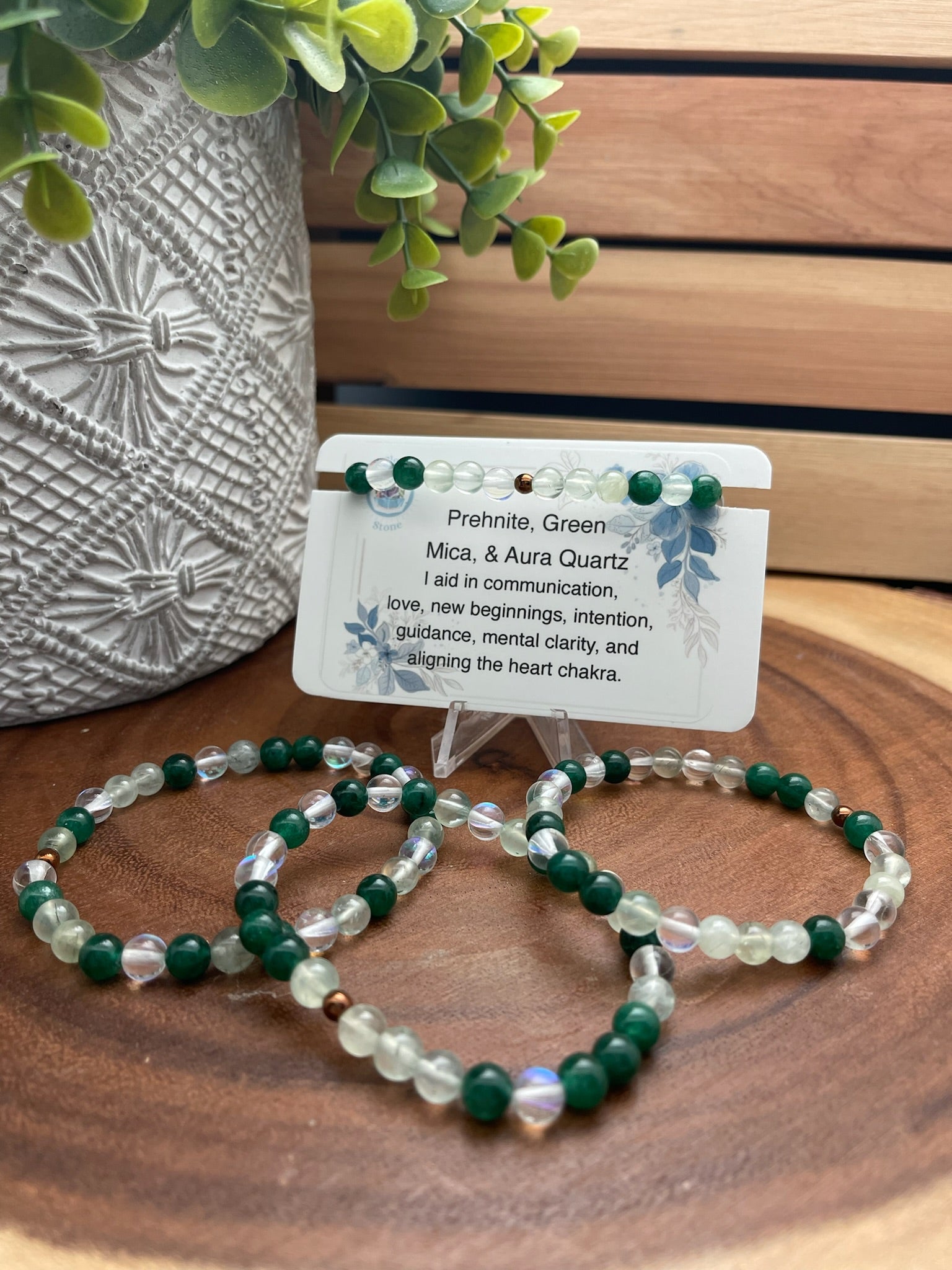Prehnite, Green Mica, & Aura Quartz Bracelet