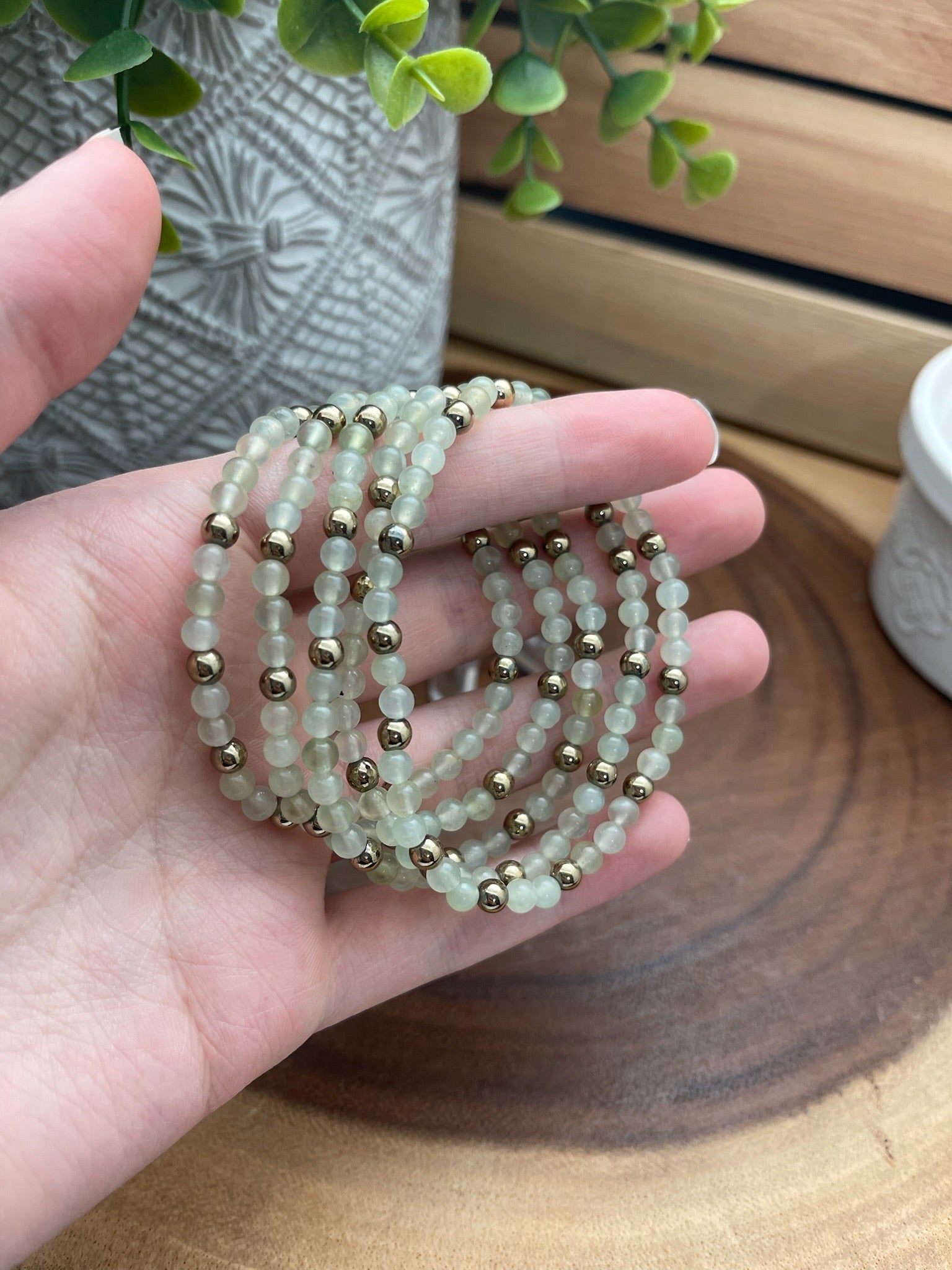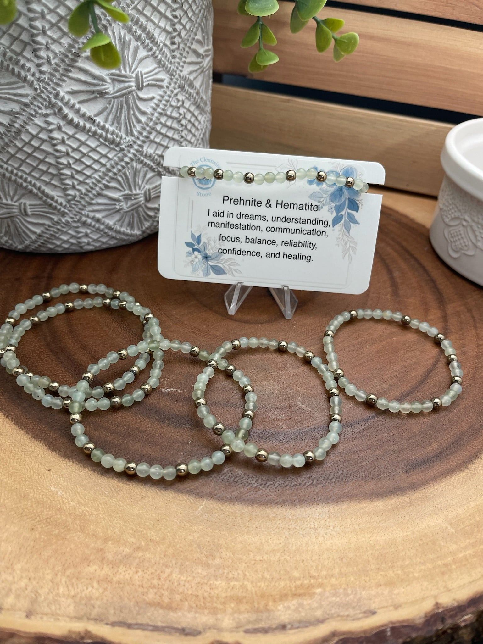 Prehnite & Hematite Bracelet