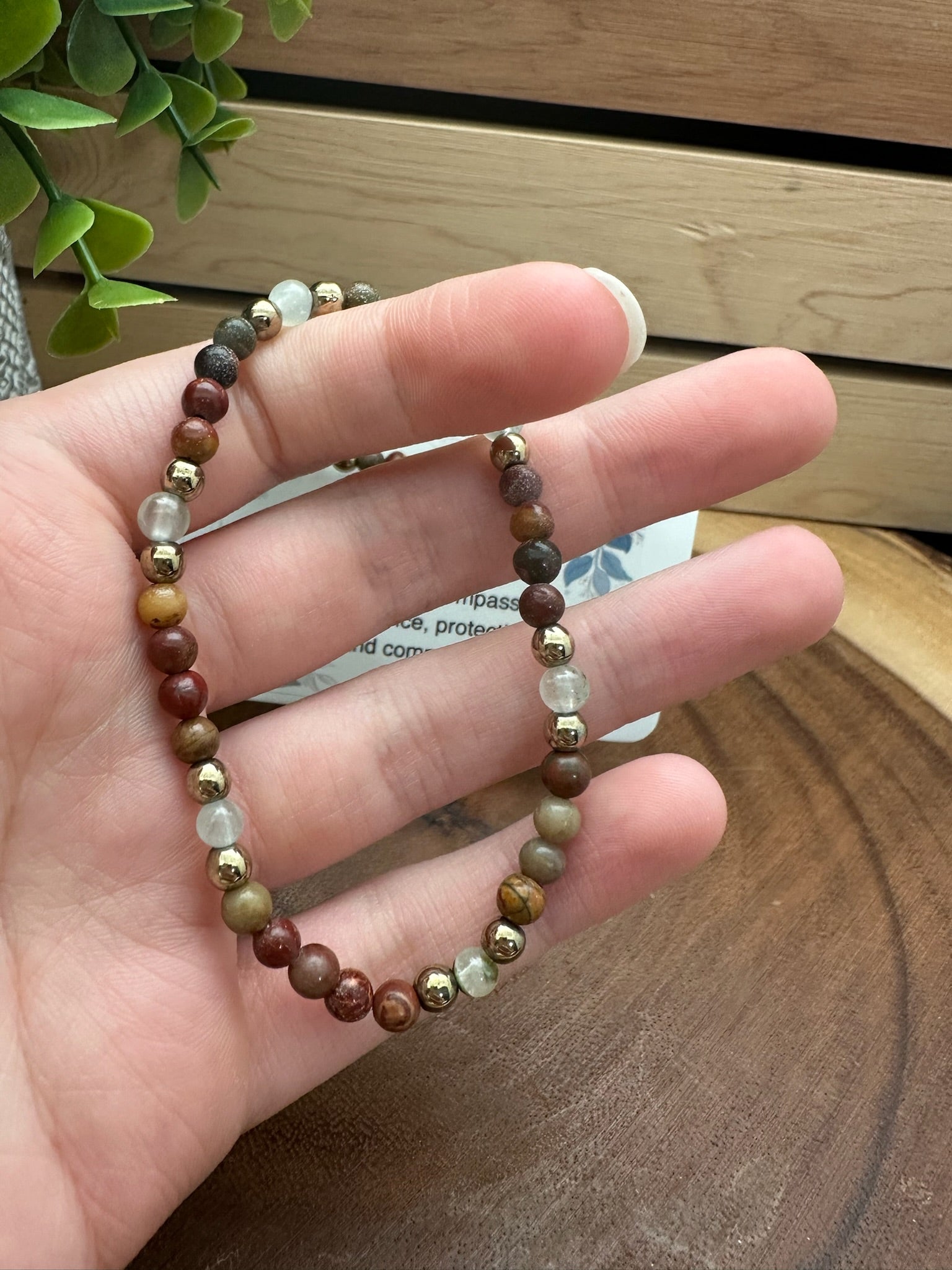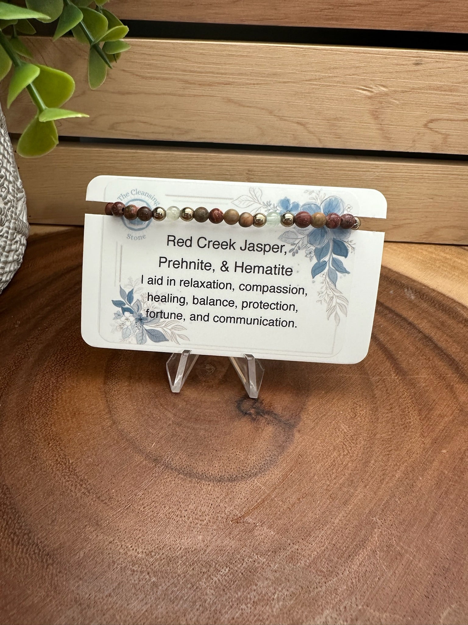 Red Creek Jasper, Prehnite and Hematite Bracelet
