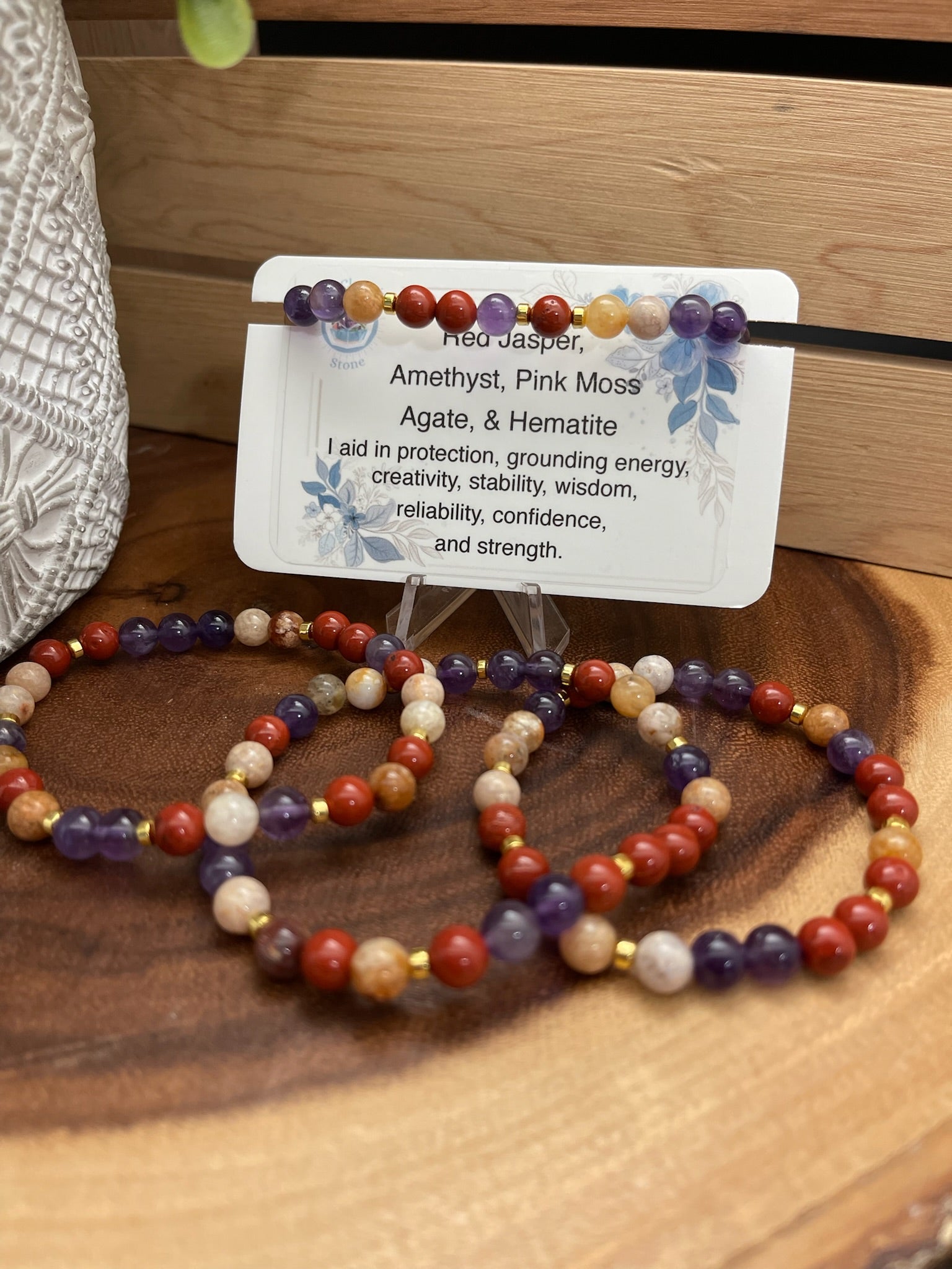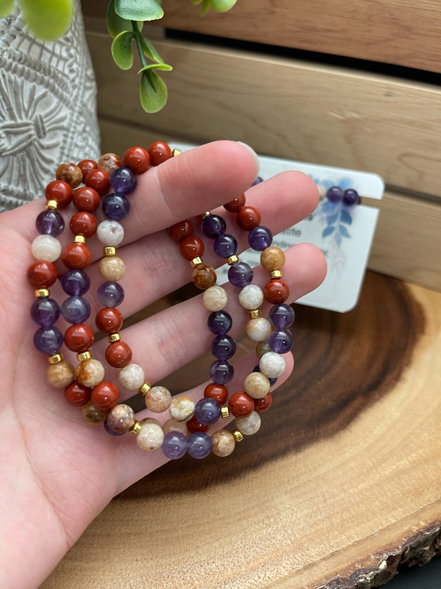 Red Jasper, Amethyst, Pink Moss Agate, and Hematite Bracelet