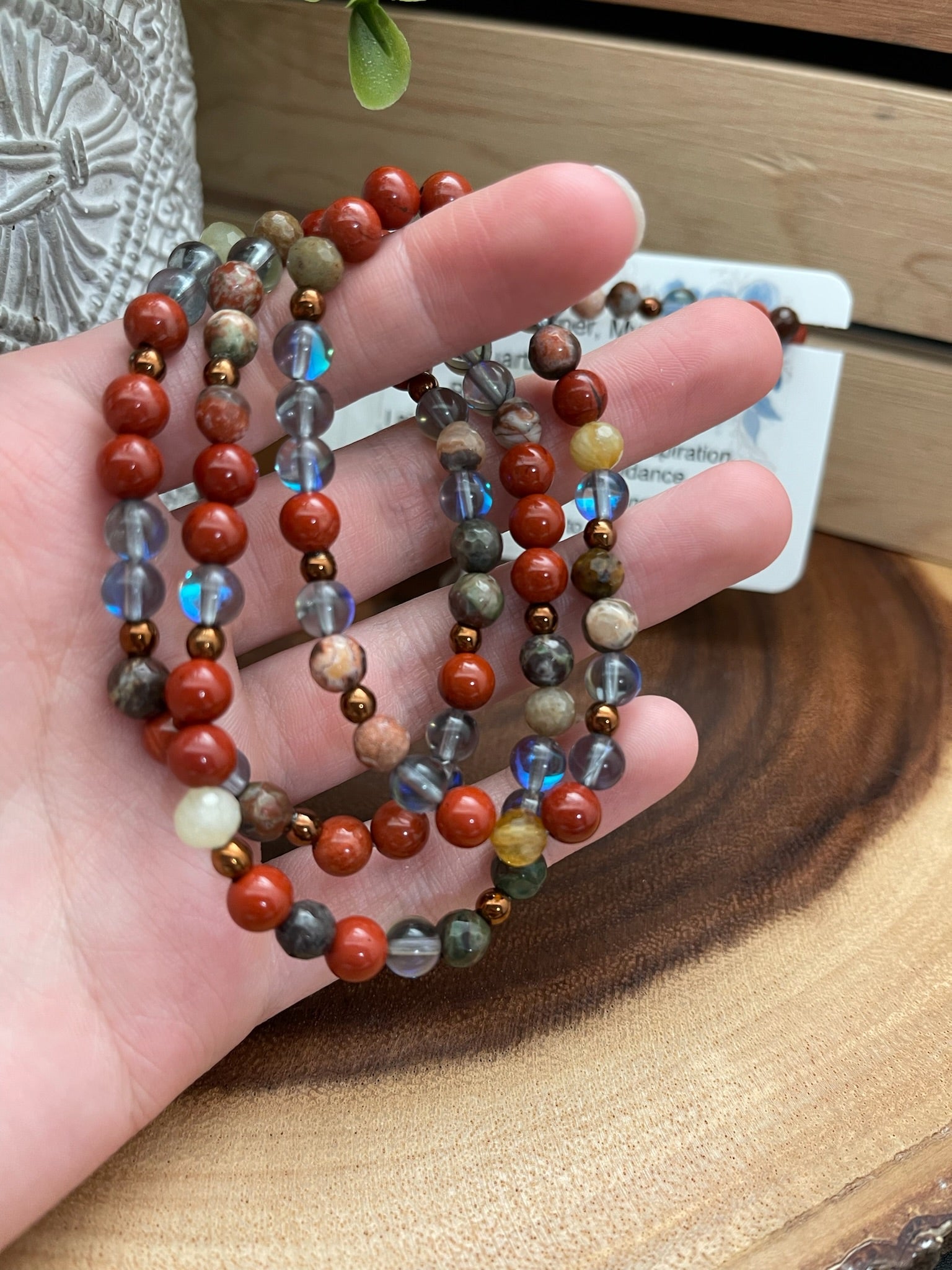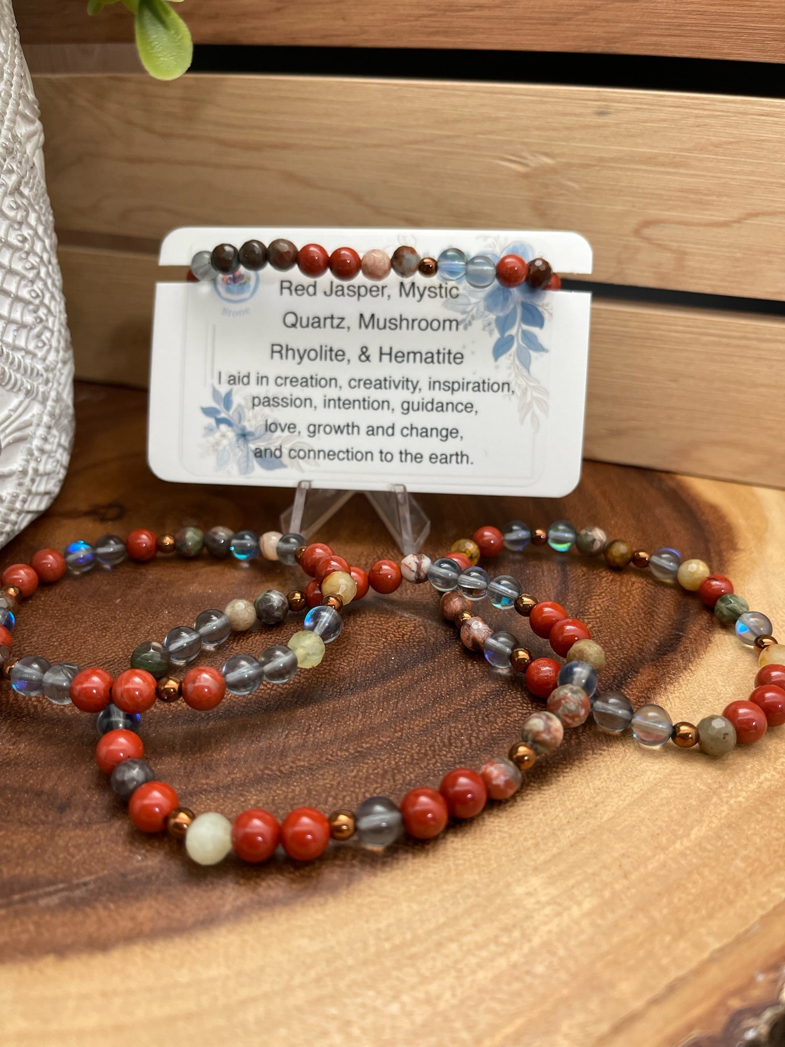 Red Jasper, Mystic Quartz, Mushroom Rhyolite, and Hematite Bracelet