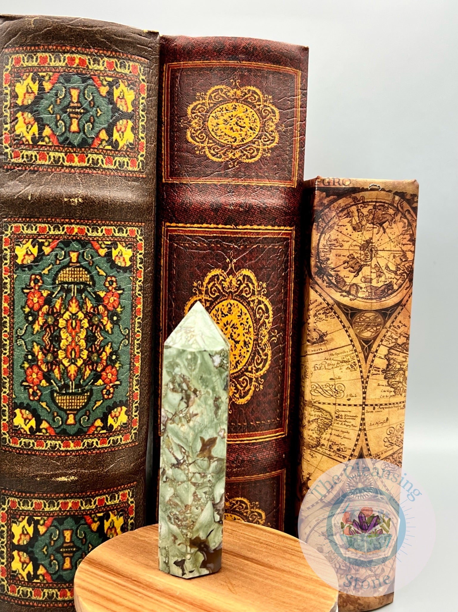Rhyolite is perhaps best known for its milky white veins flowing through the naturally formed greens and browns. However, each stone has its own unique combination and look.