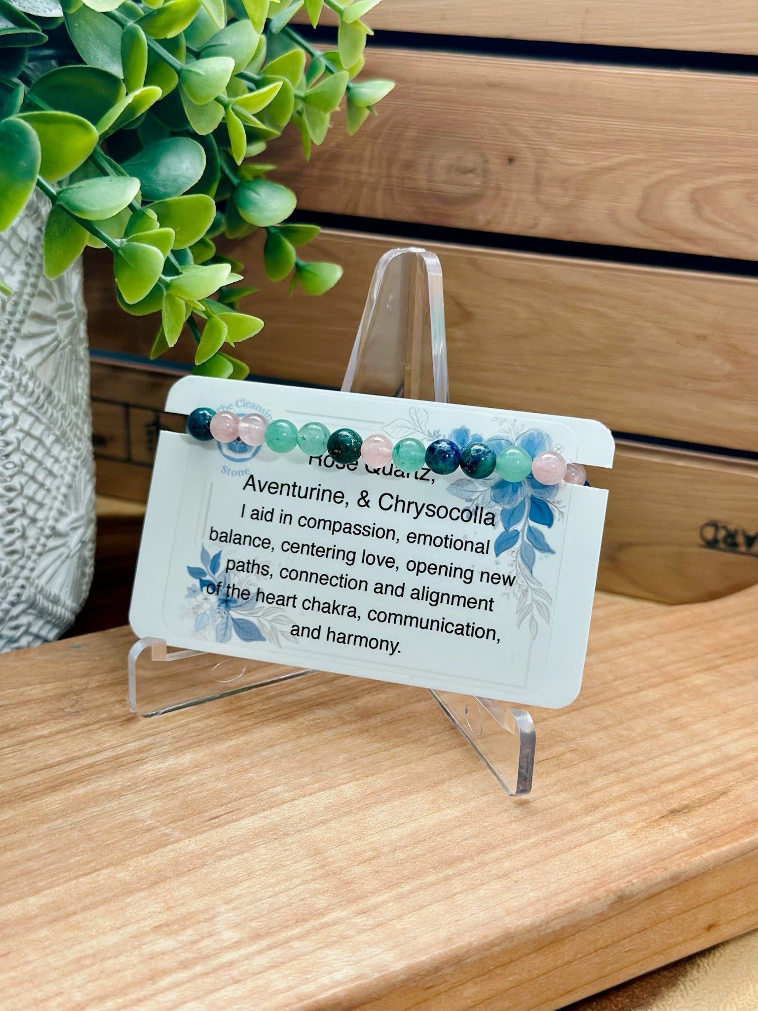 Rose Quartz, Aventurine, and Chrysocolla Bracelet