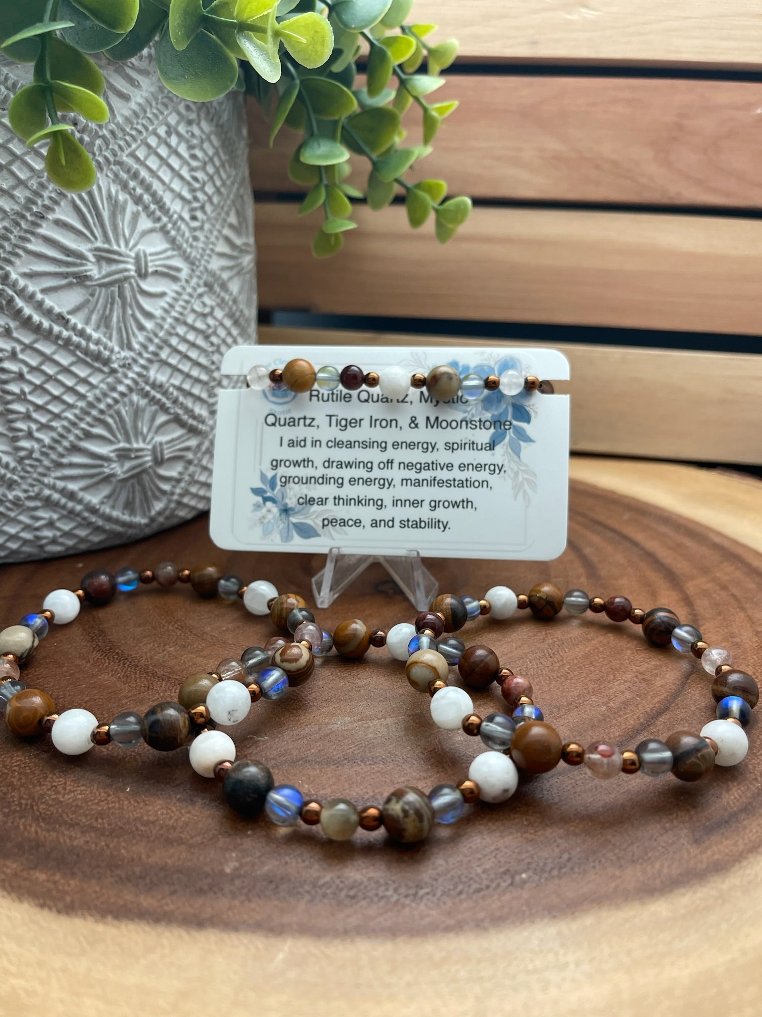 Rutile Quartz, Mystic Quartz, Tiger Iron, & Moonstone Bracelet