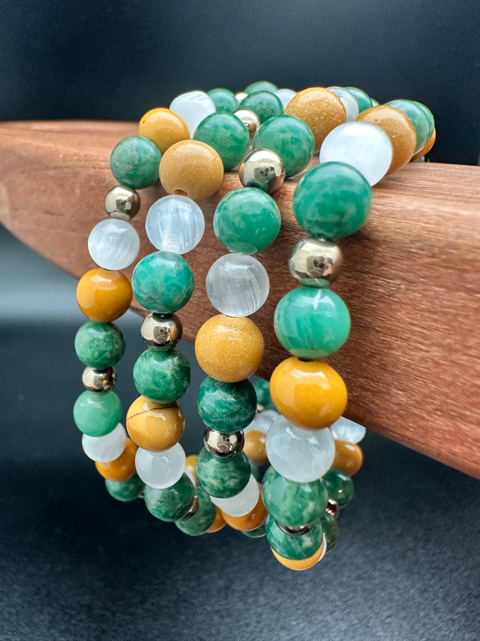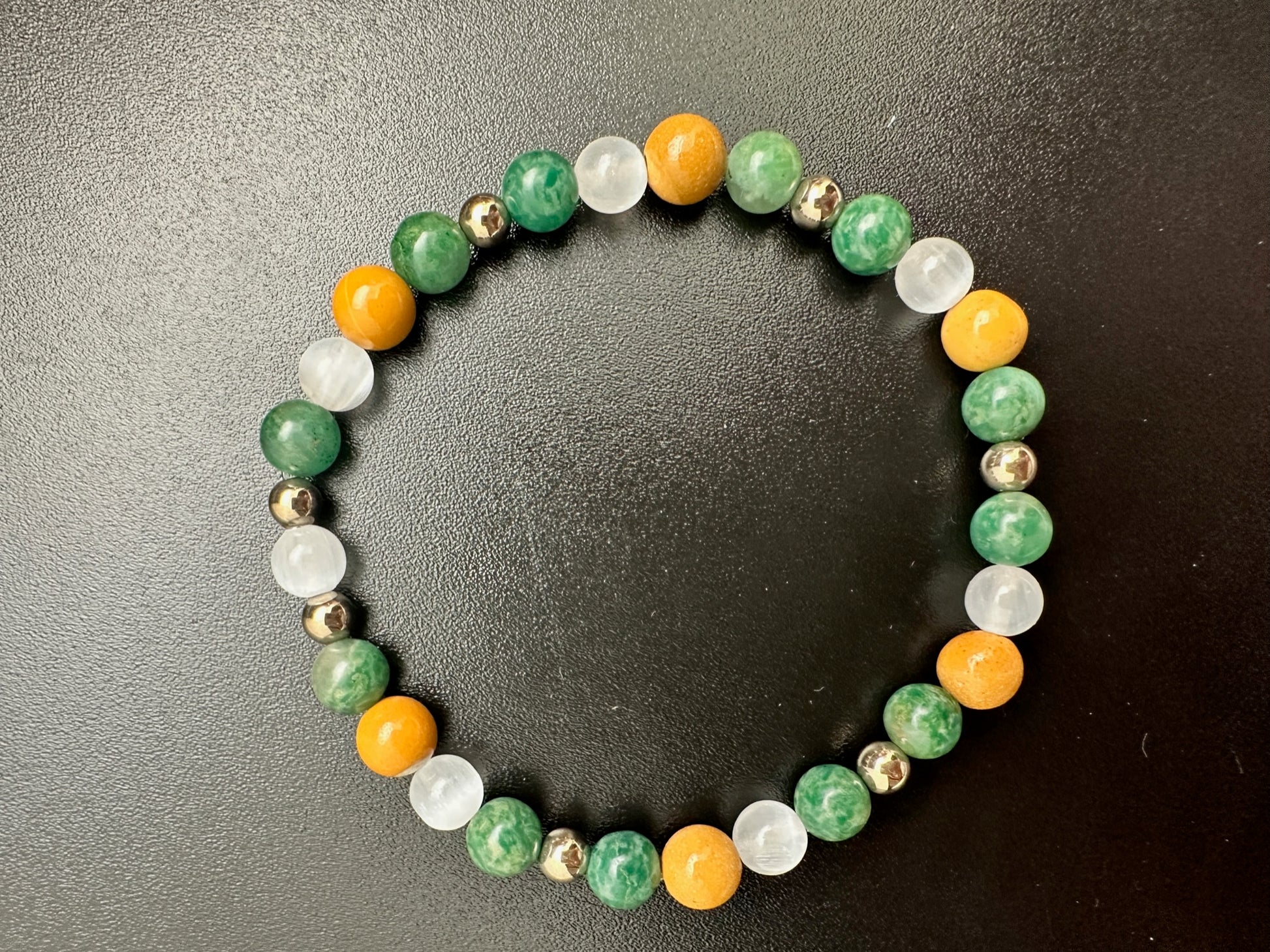Selenite, African Jade, Mookiate, Hematite Bracelet