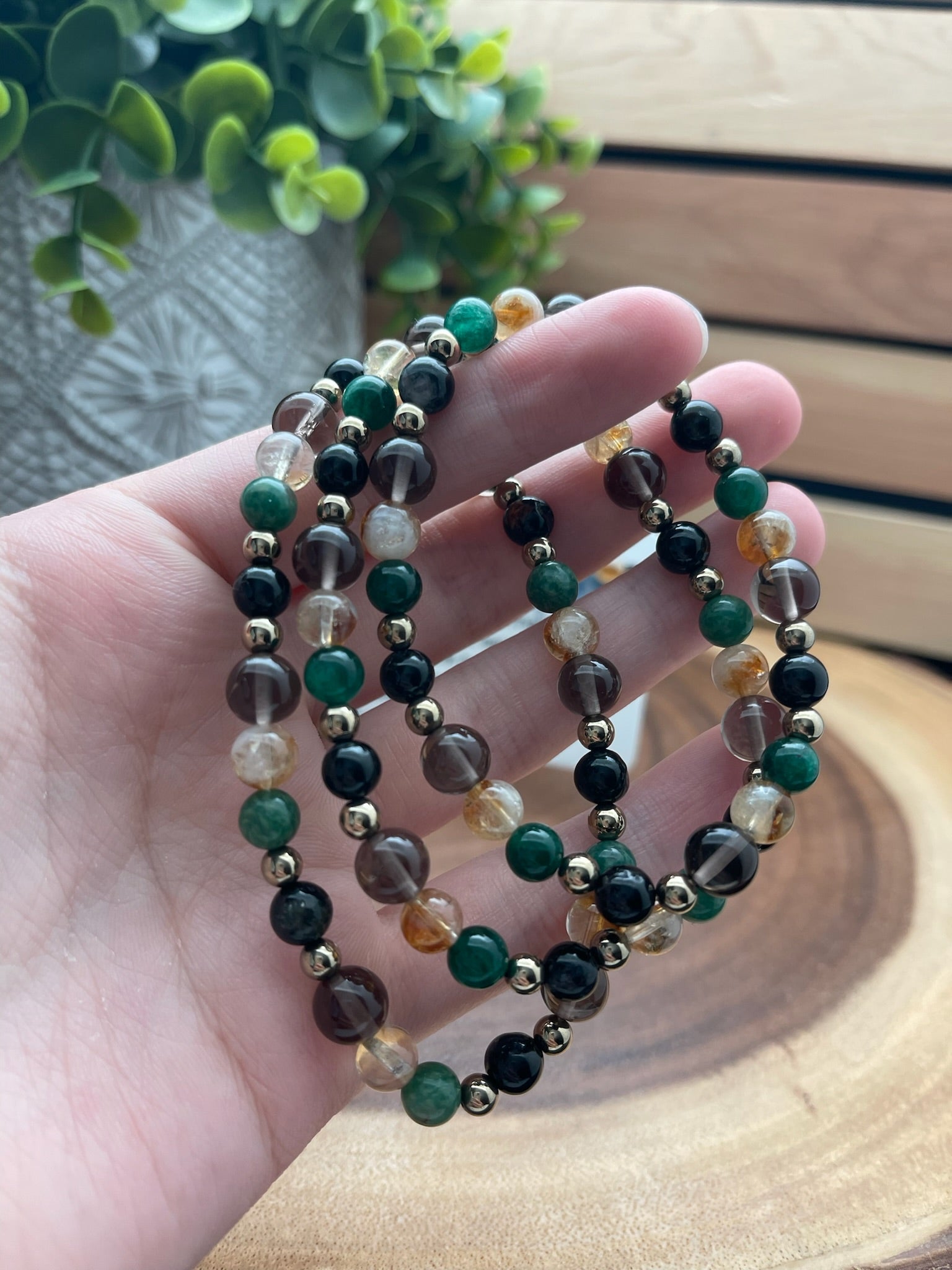 Smokey Quartz, African Jade, Citrine, and Tourmaline Bracelet