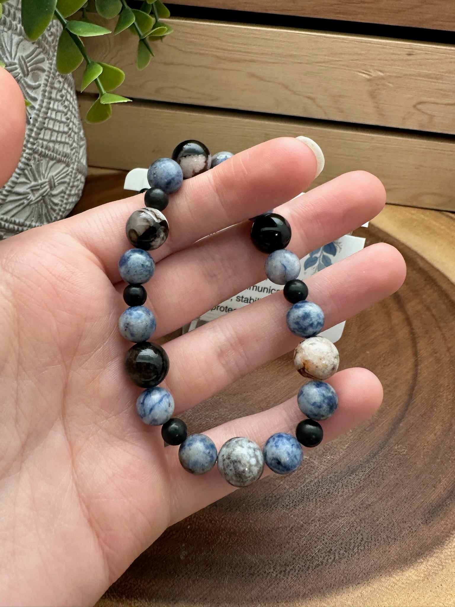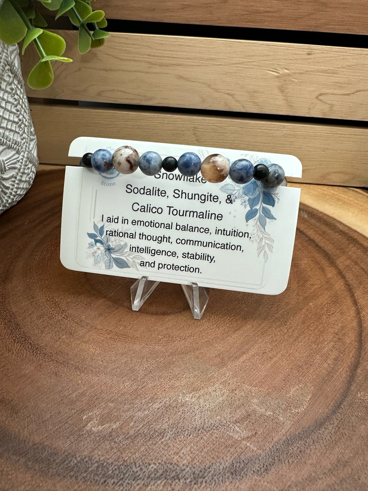 Snowflake Sodalite, Shungite and Calico Tourmaline Bracelet