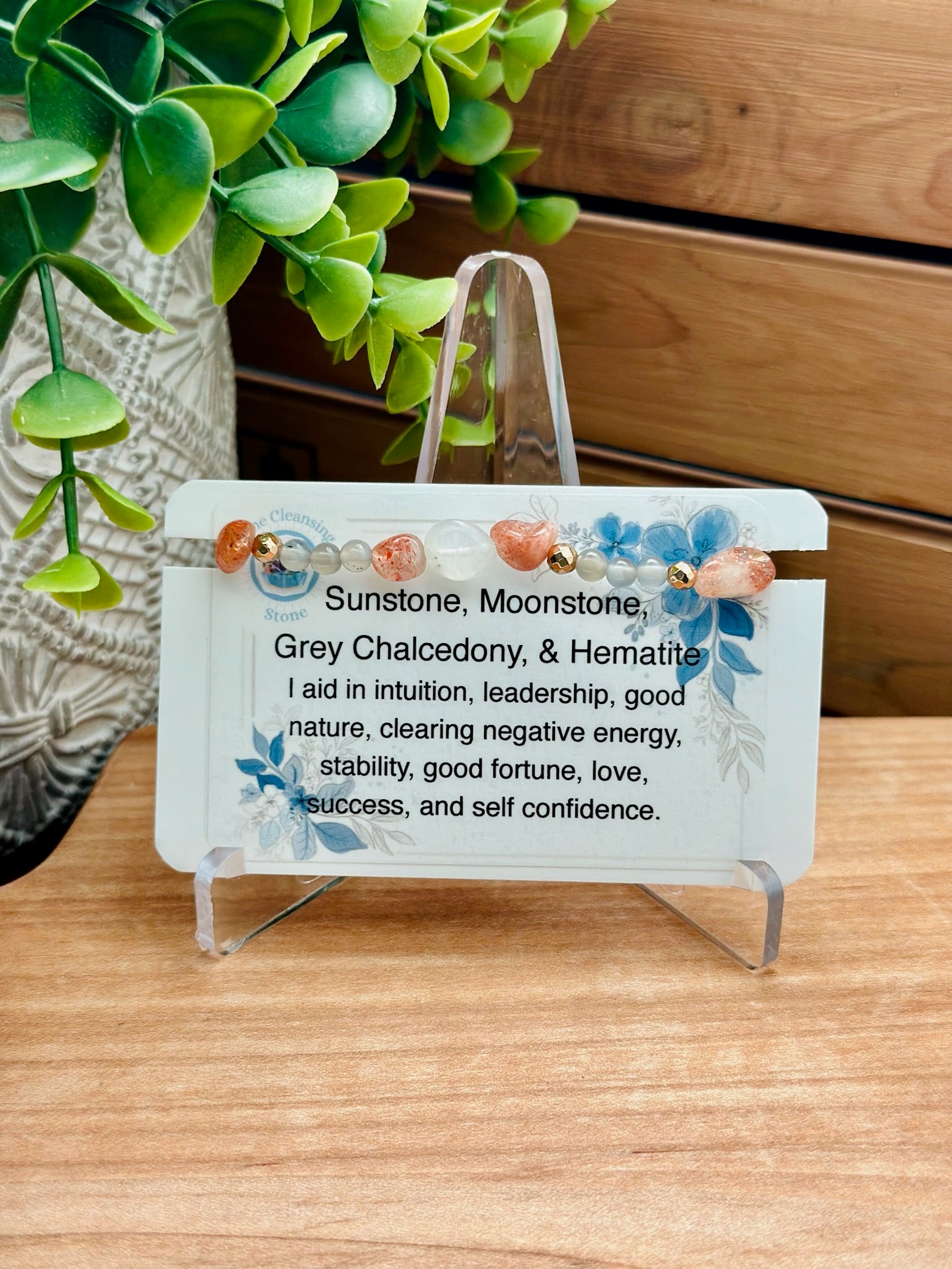 Sunstone, Moonstone, Gray Chalcedony and Hematite Bracelet