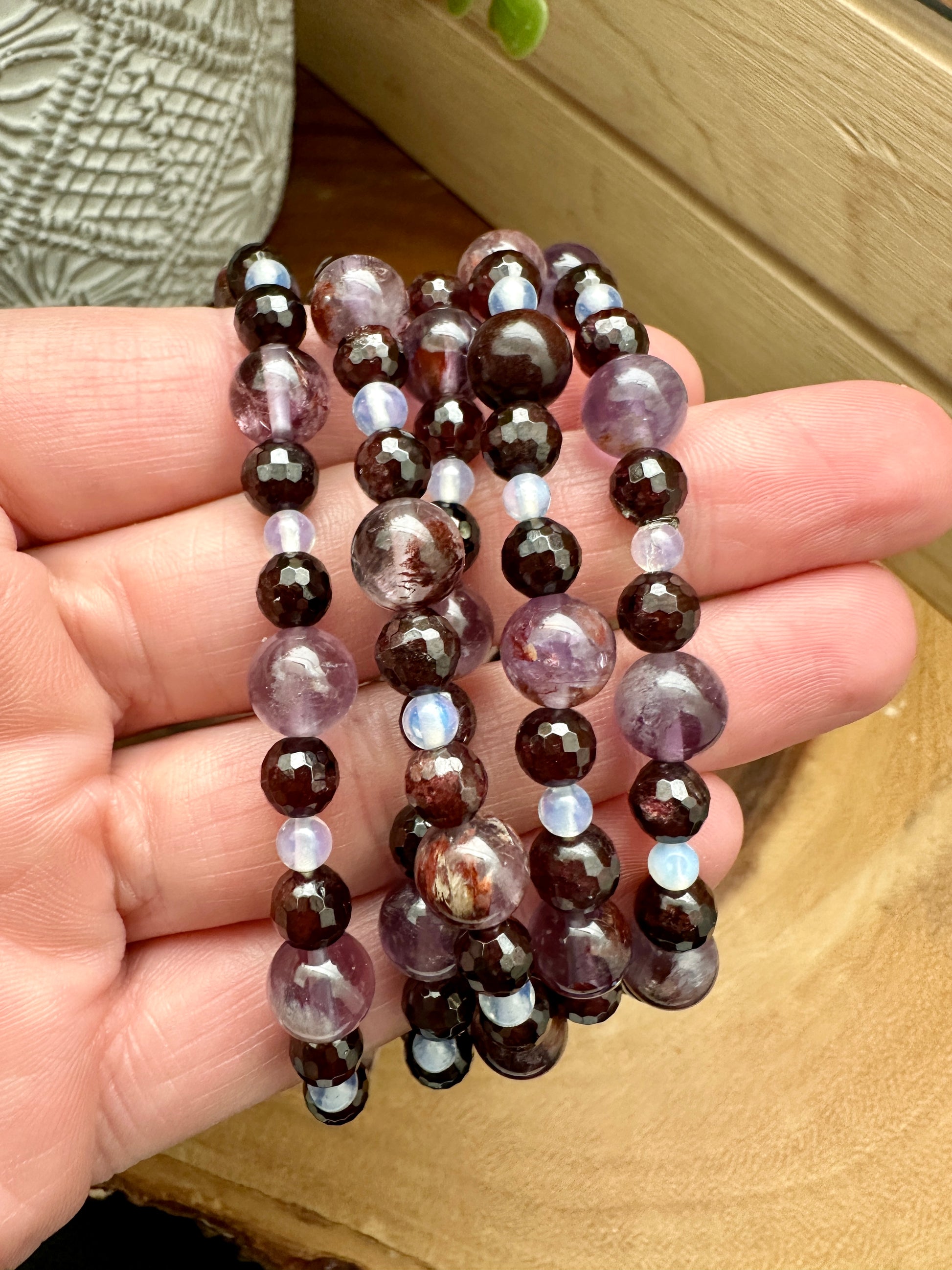 Super 7, Garnet and Opalite Bracelet
