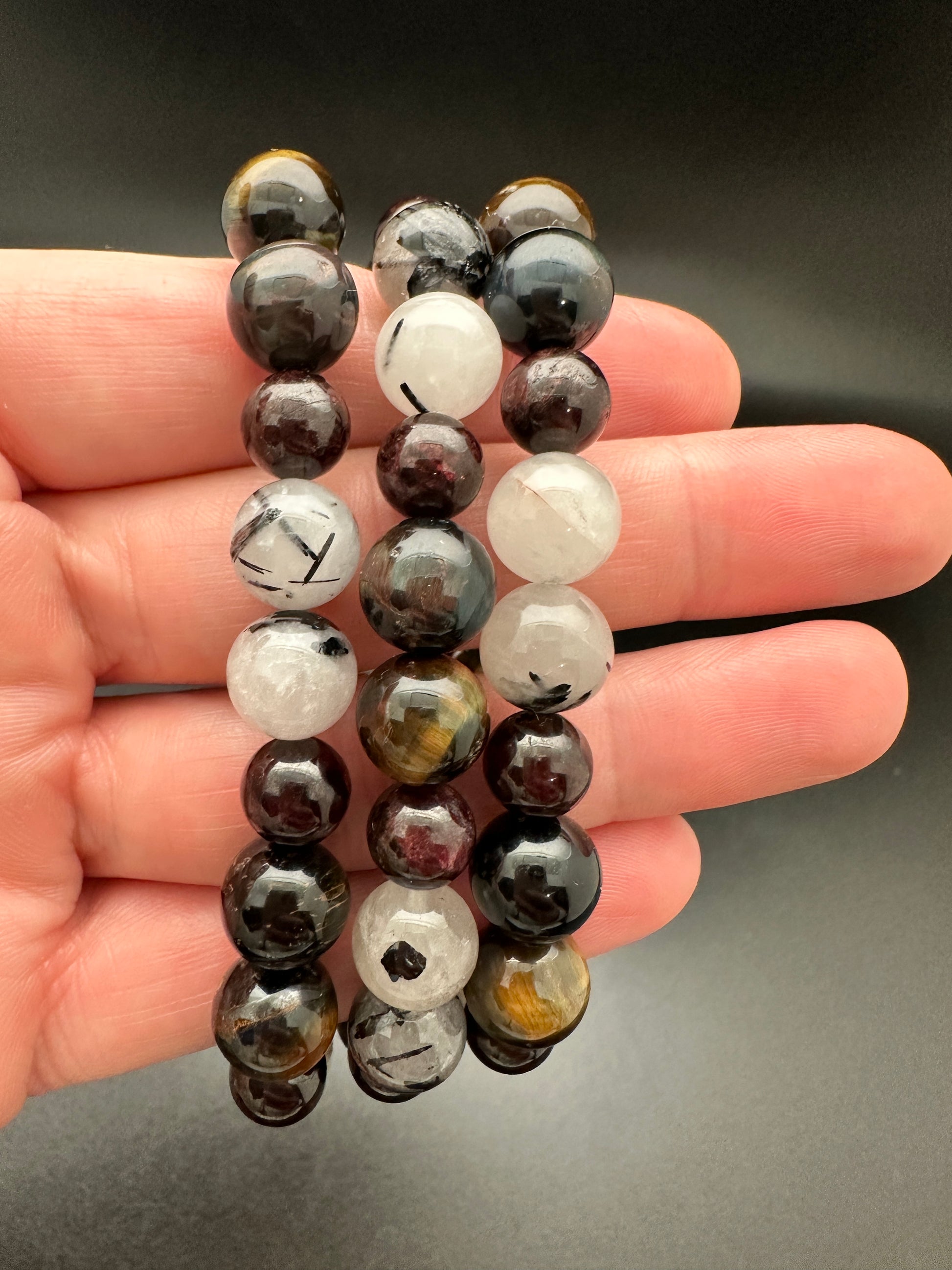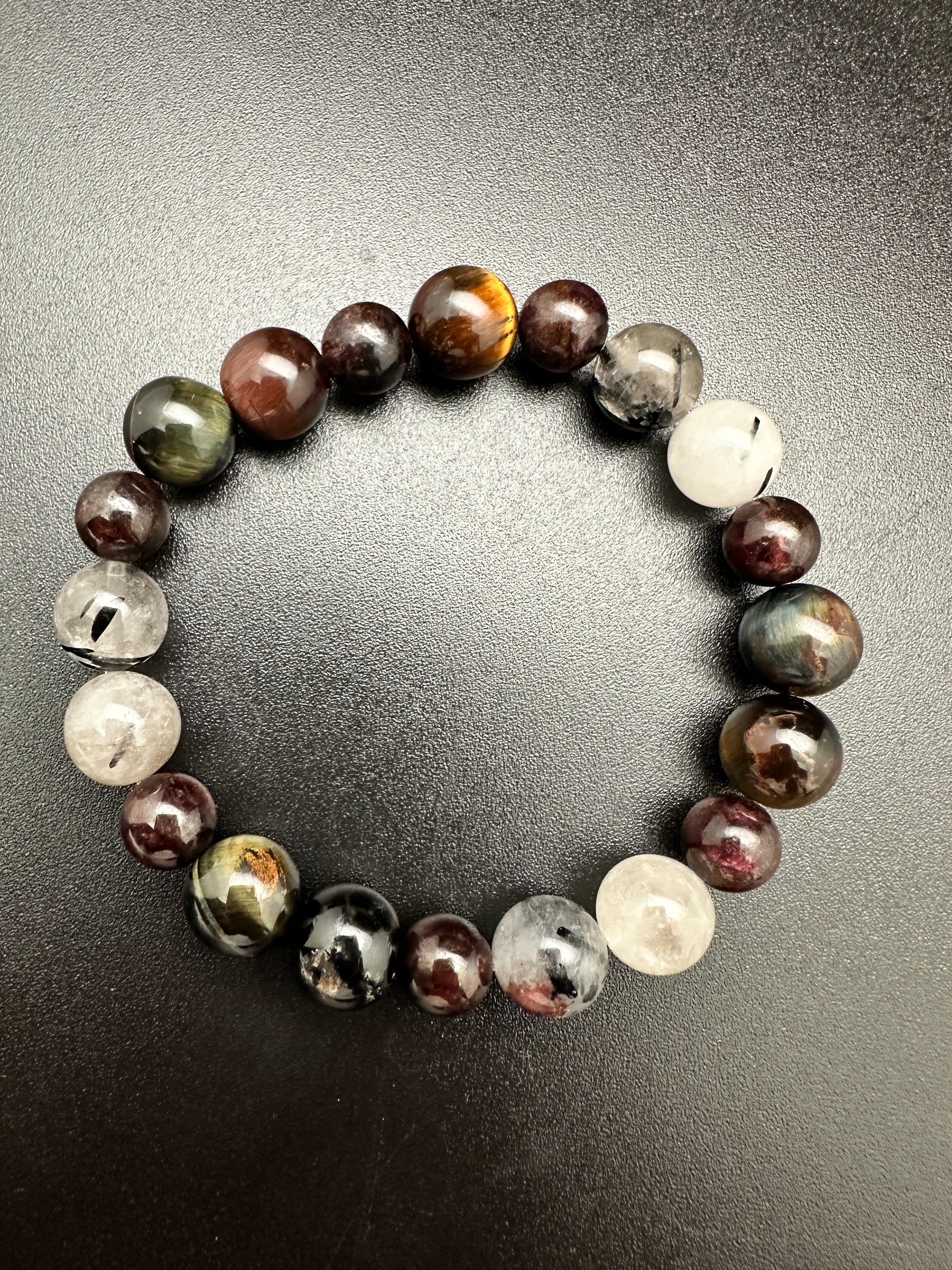 Tigers Eye, Tourmalated Quartz and Garnet Bracelet