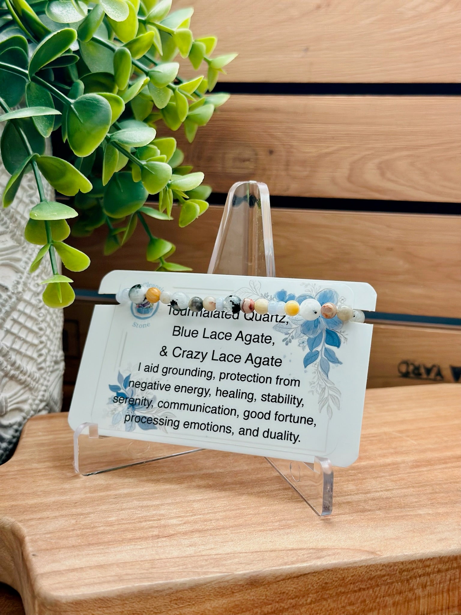 Tourmalated Quartz, Blue Lace Agate, & Crazy Lace Agate Bracelet